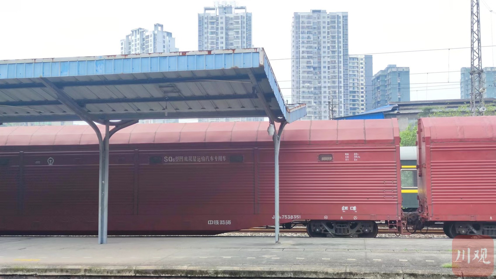 红褐色涂装的列车上方的喷漆字样显示,这是一辆双层运输汽车专用铁路货车。“红色的大家伙看起来其貌不扬,其实肚子里很能装货,小汽车就是从它的肚子里运到各地。”中国铁路成都局集团有限公司重庆车务段永川站党总支书记苏国勇介绍,在成渝铁路中段经过的站点中,永川站是较早使用这一车型的站点。附近的长城汽车永川工厂的汽车通过永川站,经成渝铁路运输往全国各地。