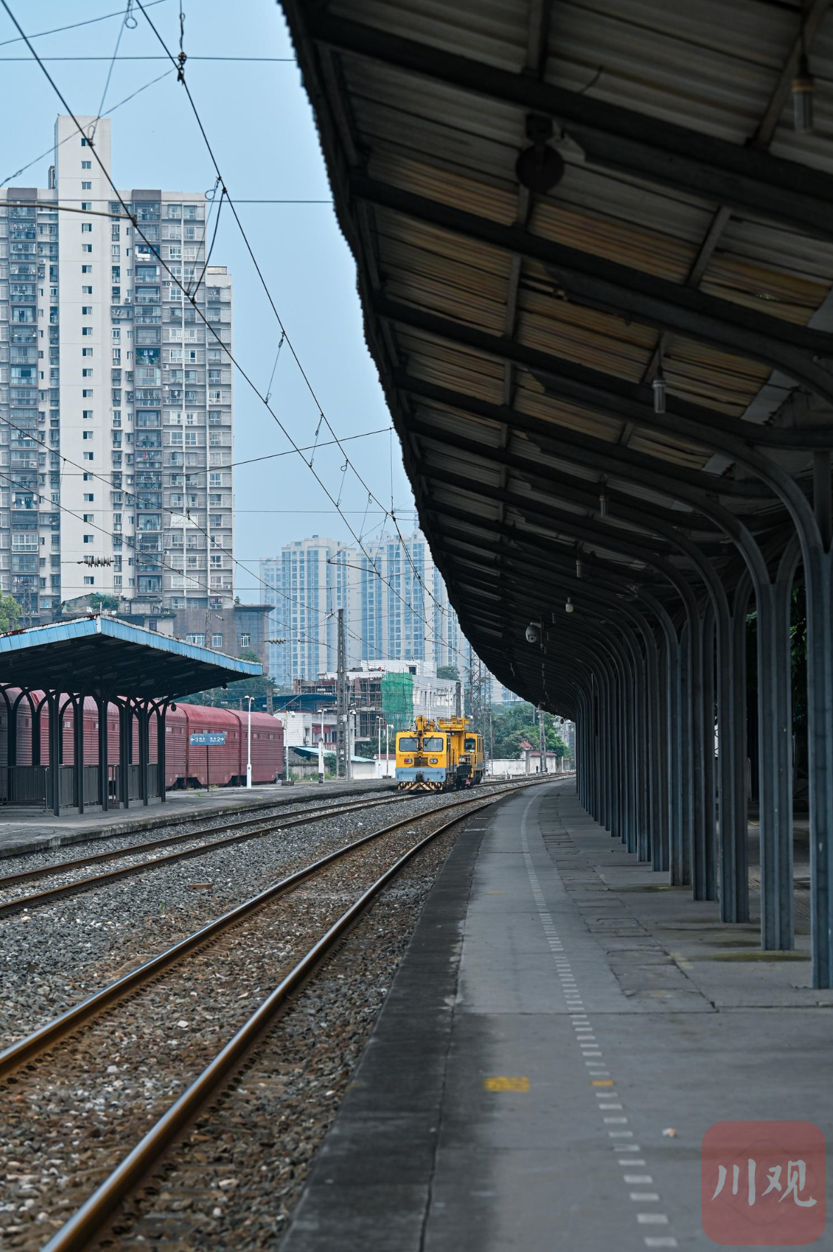 6月23日上午,在重庆市永川区,成渝铁路永川站,一辆红褐色涂装的列车停在站内的铁轨上,为这个成渝铁路上的老站点带来了更鲜艳的气息。