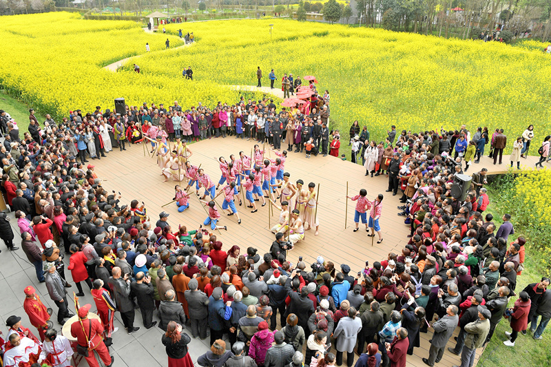 景区所在的都江堰市石羊镇金龙、七里两个社区,有“中国田园诗歌小镇”之称,是省级非遗“柳街薅秧歌”实景演出地,也是首届中国农民丰收节全国六个分会场之一。