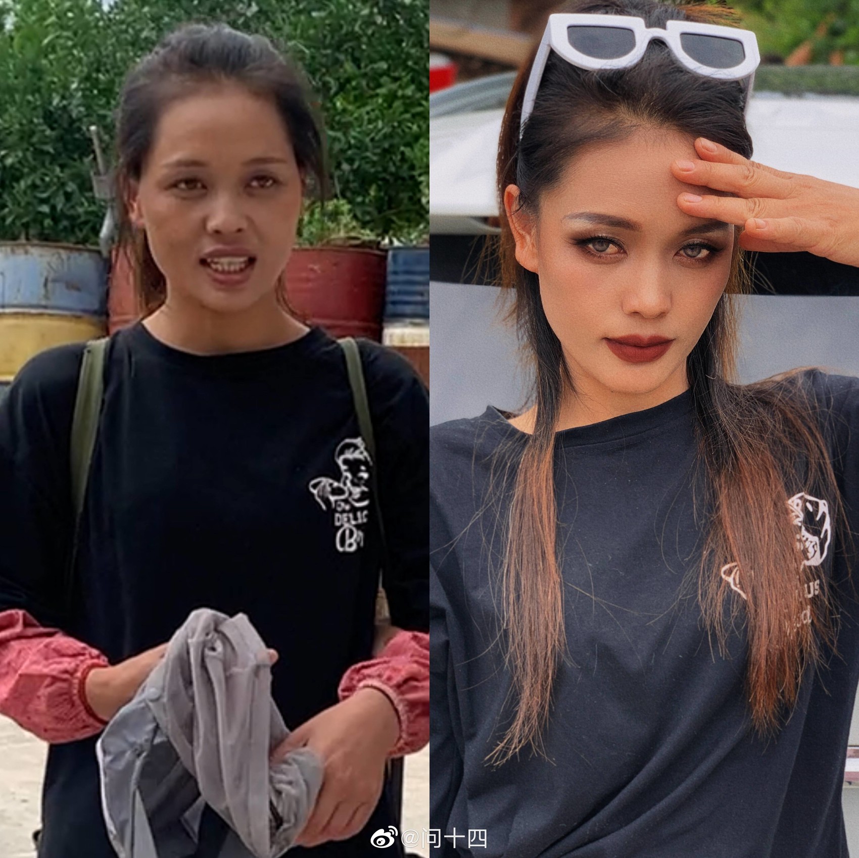 刘润给村里的人化妆前后对比照。受访者供图
