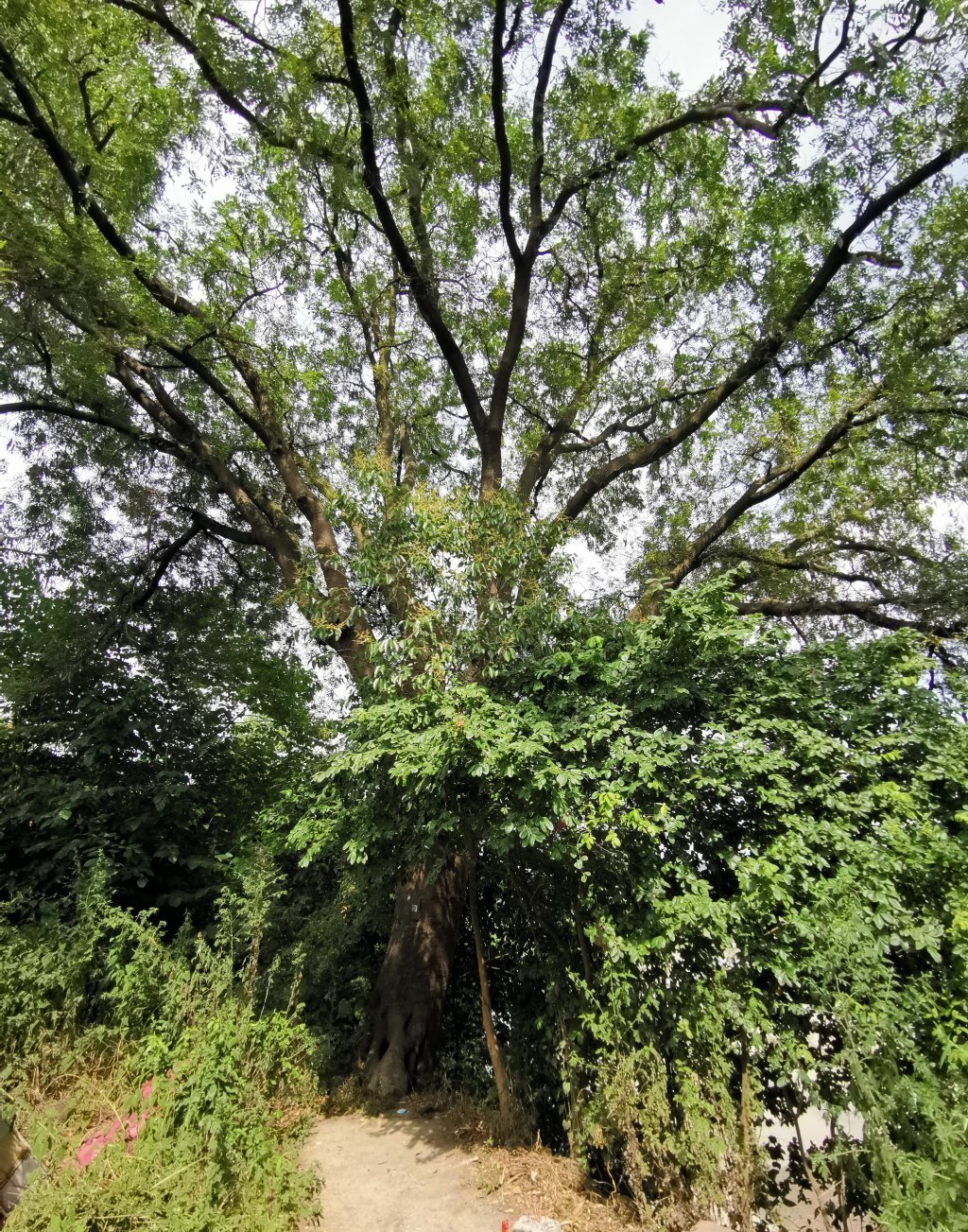 这棵据称有300多年深褐色的皂荚树枝繁叶茂,需两三个人合围。它像一位饱经忧患的老者,长年累月站在原地,朝着天空孤独地生长,默默承受风霜雪雨无情的剥蚀,与萋萋荒草、荆棘藤萝为伴,领略了日月星辰的轮回交替,品味了人世间的温凉冷暖。