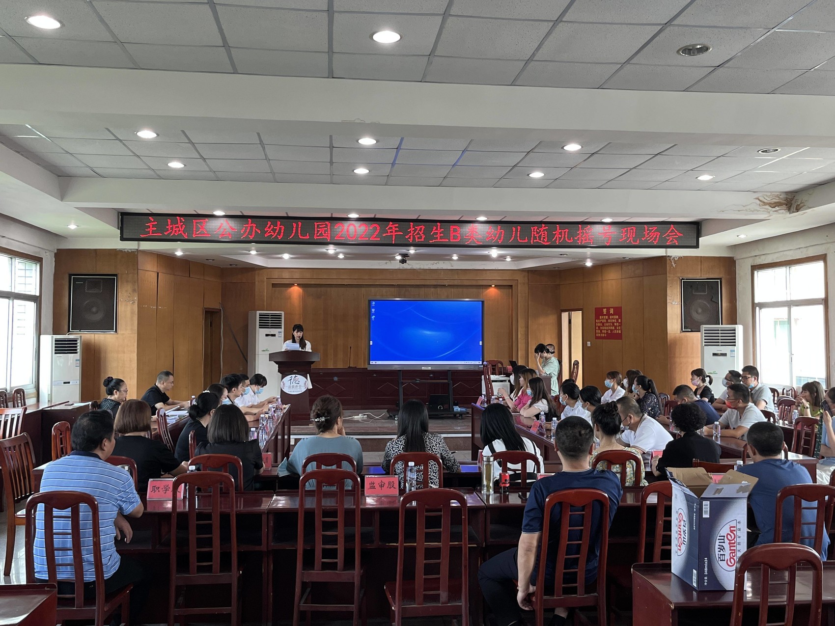 7月5日上午,东坡区主城区公办幼儿园2022年秋季招生B类幼儿随机摇号现场会在东坡区教体局举行。招生采取“电脑随机摇号”的方式进行,在区纪委监委派驻区教体局纪检监察组、区经信局、区不动产登记中心、眉山市东坡公证处、相关媒体、家长代表等组成的监督小组的监督下,由随机抽取的家长代表现场敲击专用电脑摇号系统按键,产生苏洵、百坡实验、区第一、二、三、四、六幼7所园的小班B类录取名单。