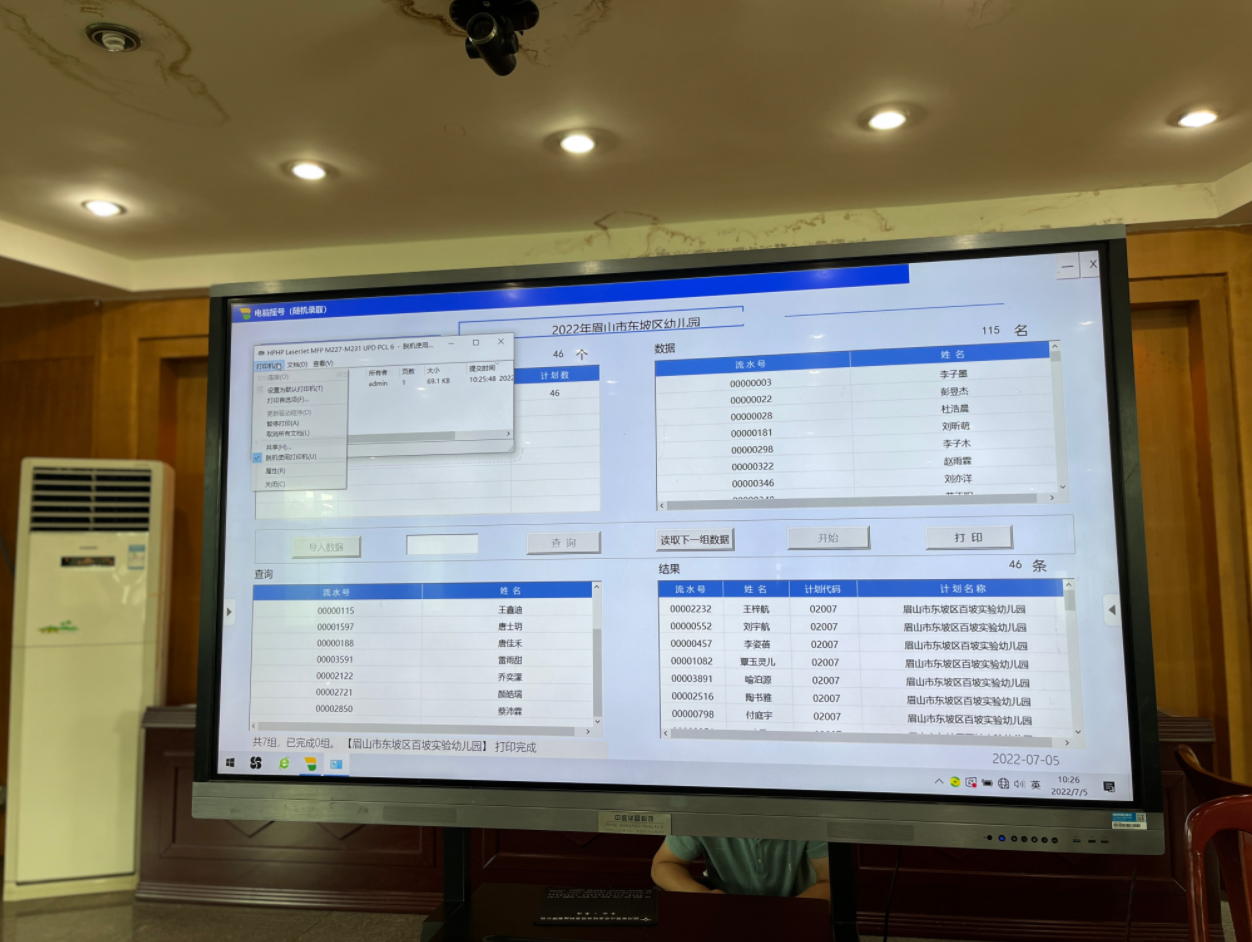 “A类前期已录取幼儿1026人,今天进行B类幼儿现场摇号录取,其中苏洵、百坡实验、区第一、二、三、四、六幼这7所幼儿园因摇号录取人数大于我们的剩余空缺学位数,所以今天在这里进行现场摇号,总共录取幼儿391人。另外,因实验、机关、南湖、双河、区五幼五所幼儿园小中大班及区二三幼大班、区五幼中大班因复审合格人数小于剩余空缺学位数,所以进入复审合格名单为我们的全部录取幼儿名单,共计493人。至此,13所公办幼儿园招生圆满结束。”东坡区教体局职学股工作人员杨卢介绍。