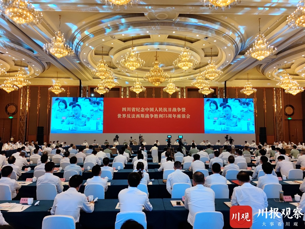 9月4日上午,四川省纪念中国人民抗日战争暨世界反法西斯战争胜利75周年座谈会在成都召开,传达学习贯彻习近平总书记重要讲话精神,铭记历史、缅怀先烈、珍爱和平、开创未来,进一步汇聚起推动治蜀兴川再上新台阶的强大合力,为实现“两个一百年”奋斗目标不懈奋斗。