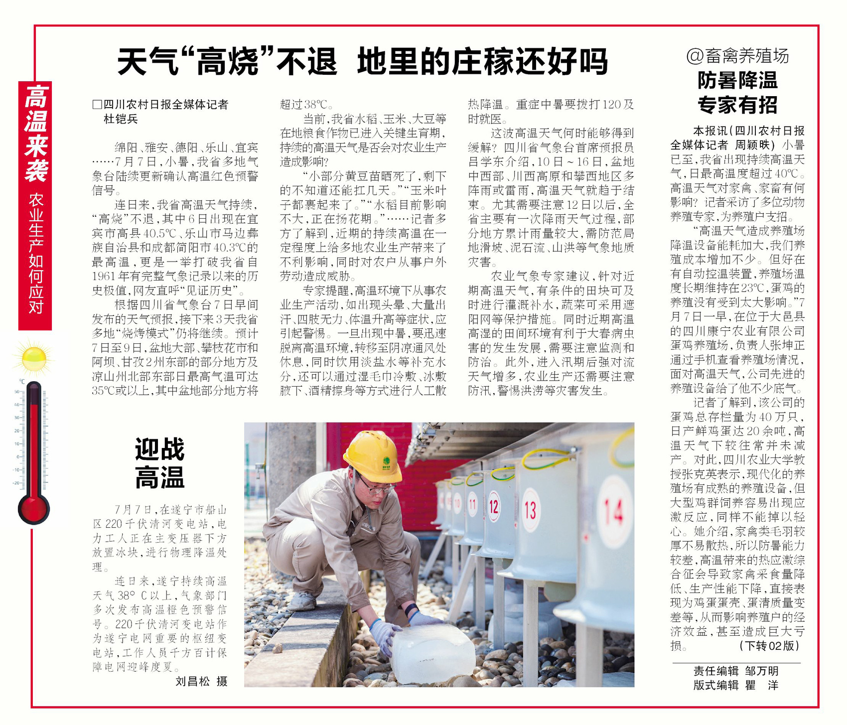 连日来,我省高温天气持续,“高烧”不退,其中6日出现在宜宾市高县40.5℃、乐山市马边彝族自治县和成都简阳市40.3℃的最高温,更是一举打破我省自1961年有完整气象记录以来的历史极值,网友直呼“见证历史”。