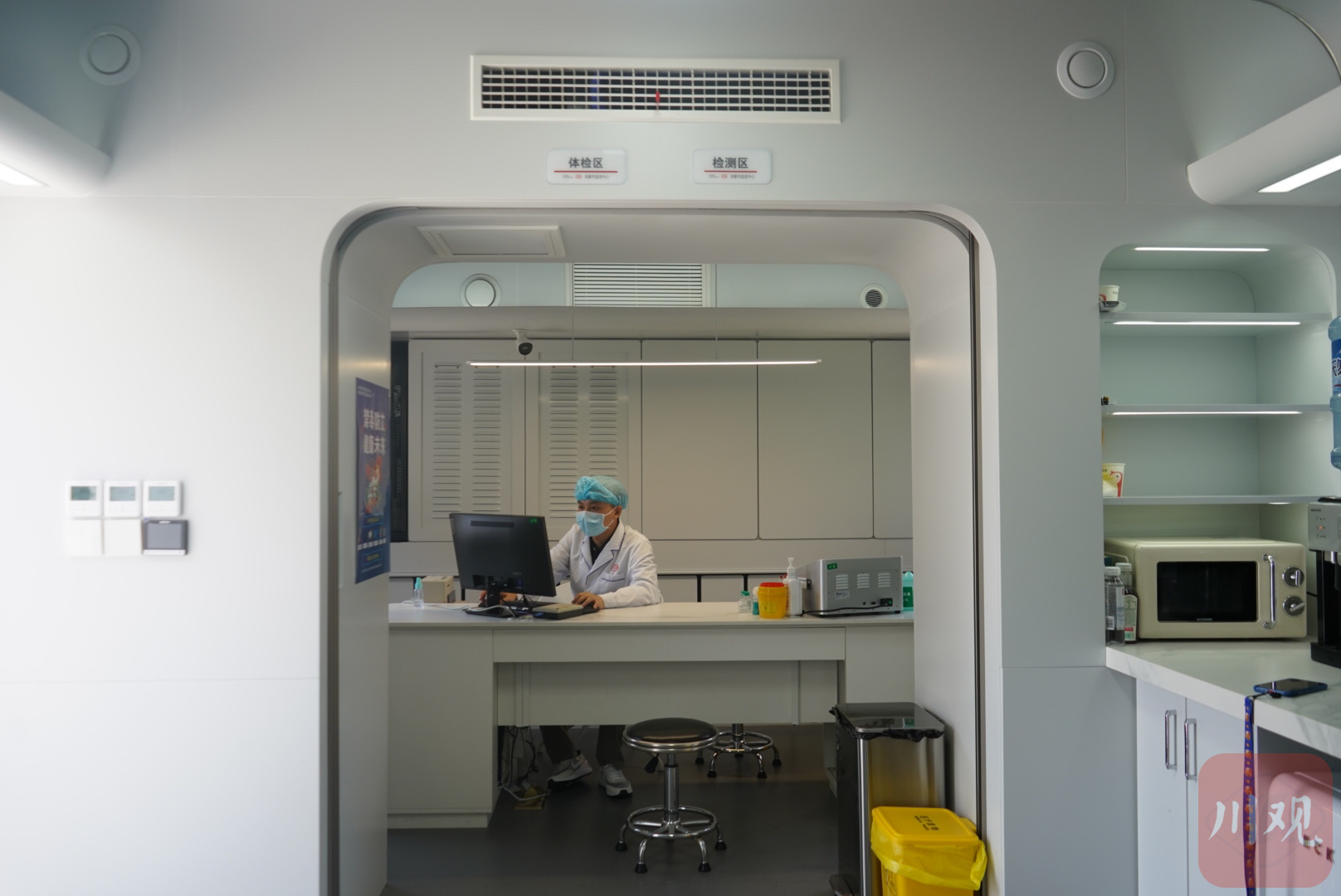 在献血者的舒适体验感上,也有巧思。“有中老年市民建议我们把献血屋变得更宽敞。”于是,祁涛和同事们着手改造太空舱布局,取消以往存放血袋、一次性医用品的暂存区,在采血区每个采血点位设医用储物架,医护人员就近拿取医用品,节省了医护人员时间,也扩大了室内活动面积。另一方面,把以往单独划分的体检和检测两个区域合并。“合并后,以往需要两个人的工作,现在一个人就能完成,节省了人力,也缩短了处理时间,让献血更加便利。”成都市血液中心血液采集三科科长李培说。