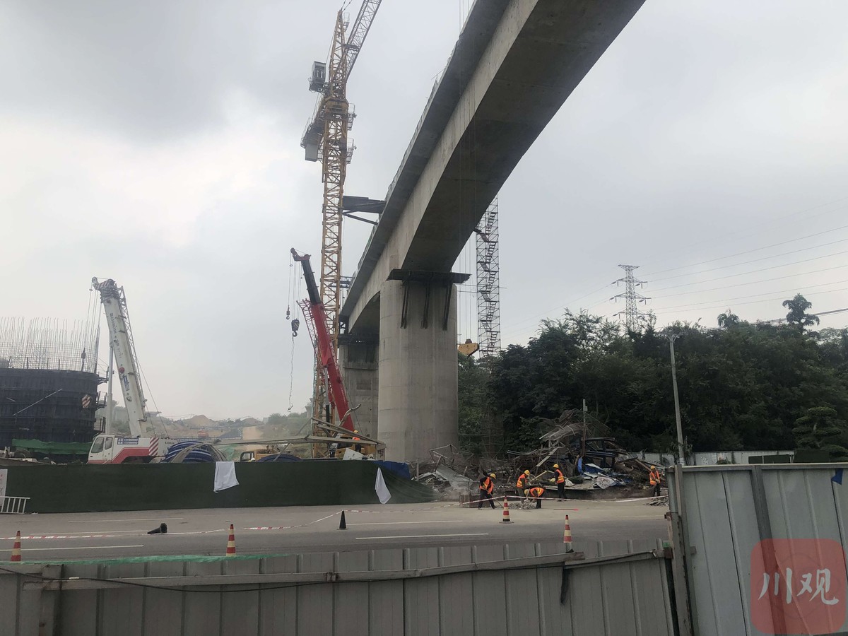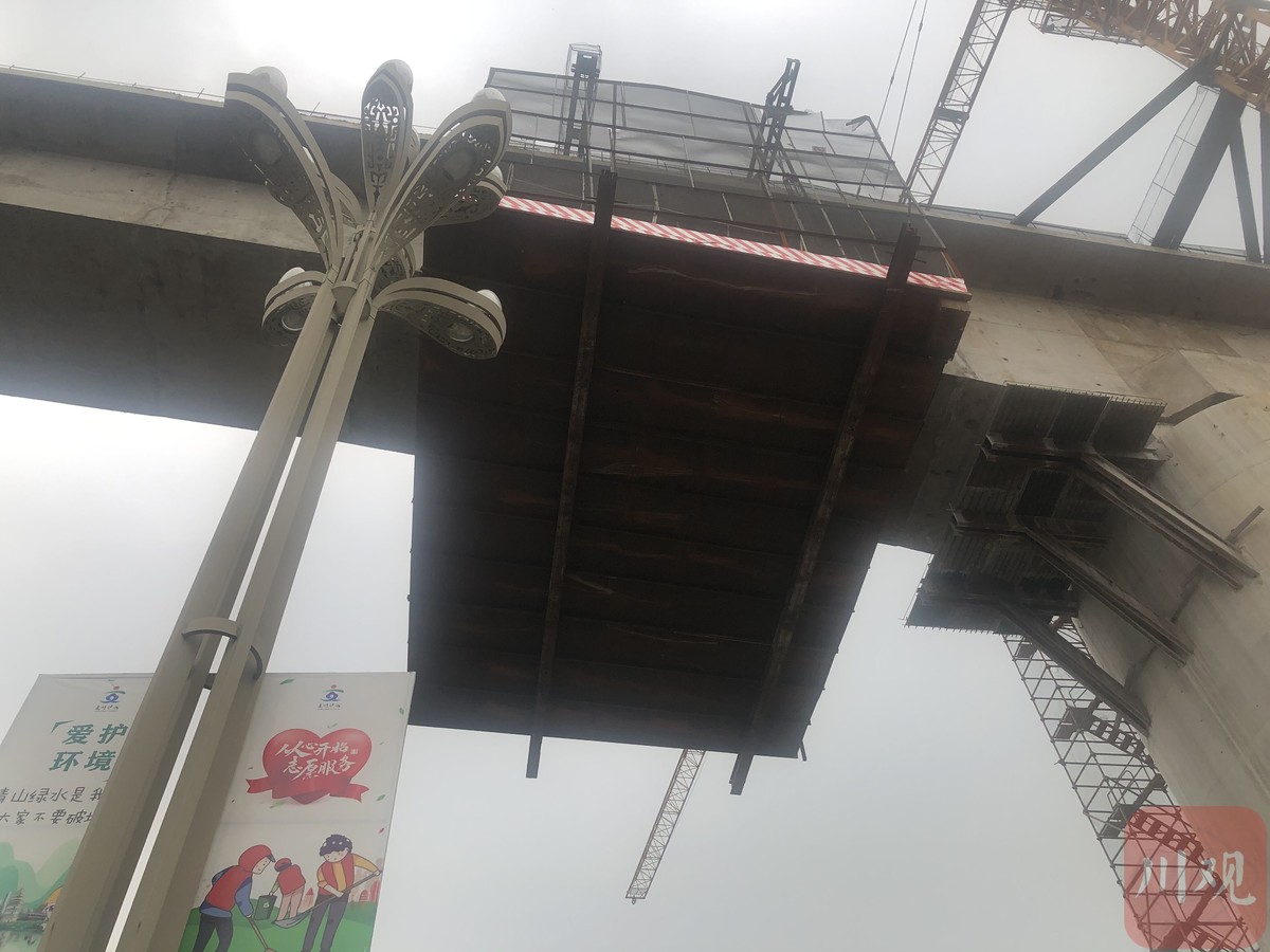 “挂篮坠落后,并未对周边建筑带来影响,只把工地的施工隔板弄倒了,也都在工地红线范围内,只是掉落的一些钢筋模板侵占了市政道路,目前我们已联动消防、交通等多个部门在处置现状、恢复交通。”胡钧表示。