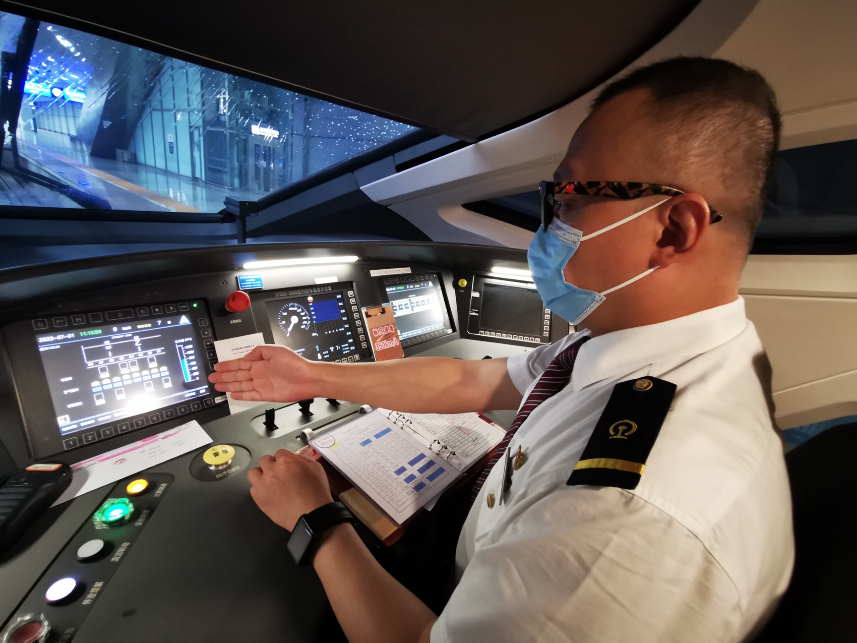 “彻底瞭望,手比眼看,准确呼唤,确认信号!”7月1日,G8623次动车从成都东站开往重庆的沙坪坝,45岁的指导司机李治刚按工作惯例,叮嘱乘务人员当日发车信息、车况、行车注意准则:“夏天汛期突发暴雨较多,所以每次发车前我都要提醒这些基本信息,叮嘱大家要对乘客负责,车道上哪怕是有一个气球,一只鸟儿,一个异物,都不能忽视。”