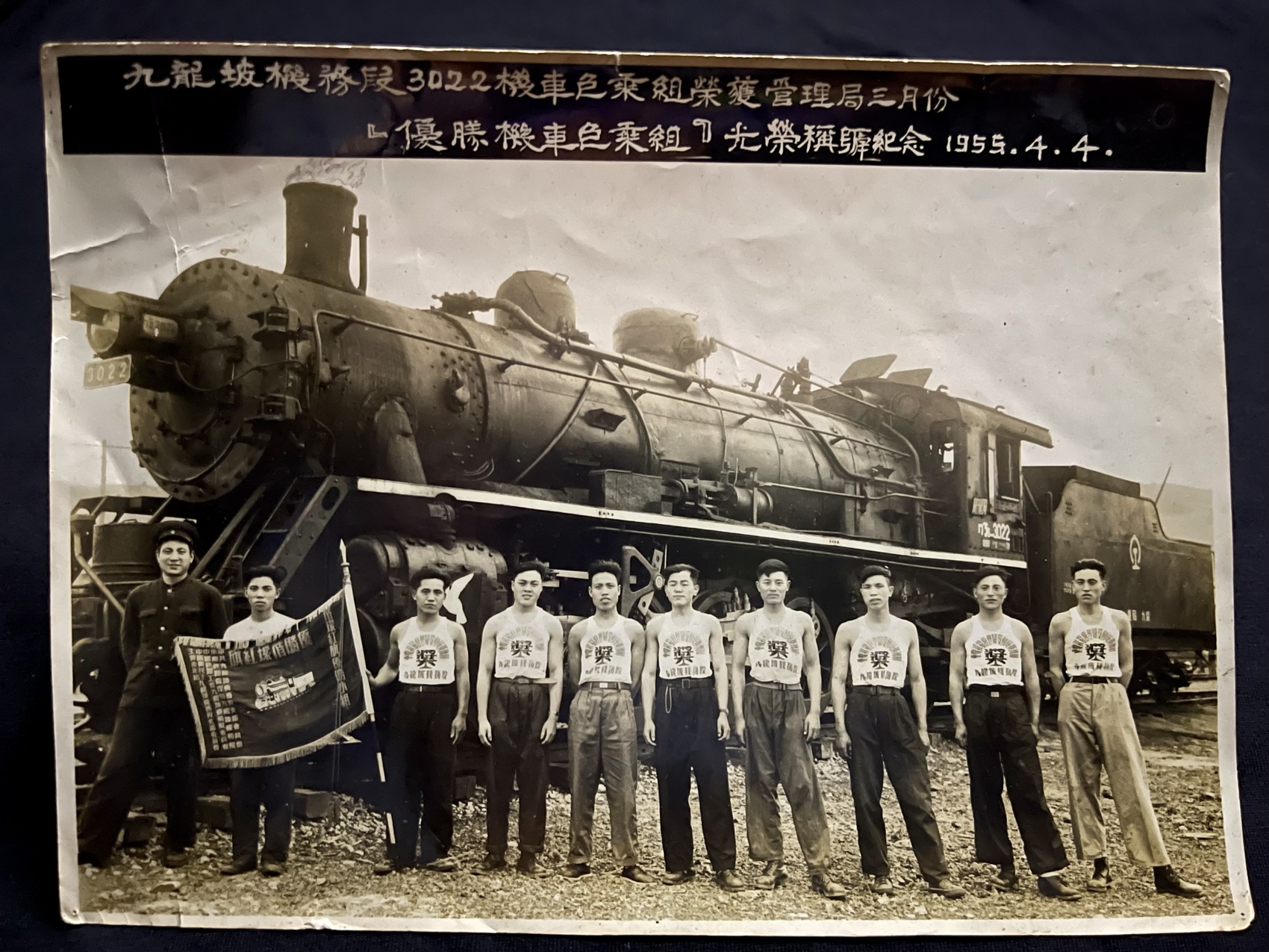 李鸿升(图左一)带领的团队获奖后与成渝铁路蒸汽机车合影。
