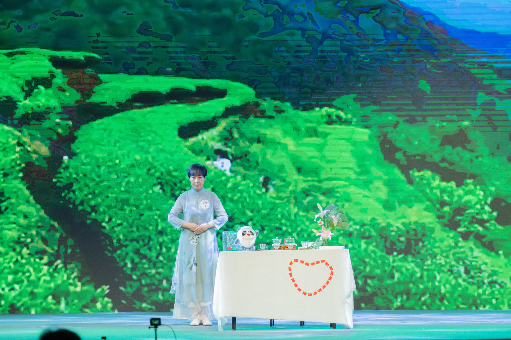 比赛场上,茶艺爱好者们将解说、表演、泡茶融入其中。伴着古典清雅的音乐,茶艺爱好者气定神闲、举止优雅,温具、置茶、冲泡、奉茶,一双双巧手在茶席间流转,淋漓尽致地展现着精妙茶艺。