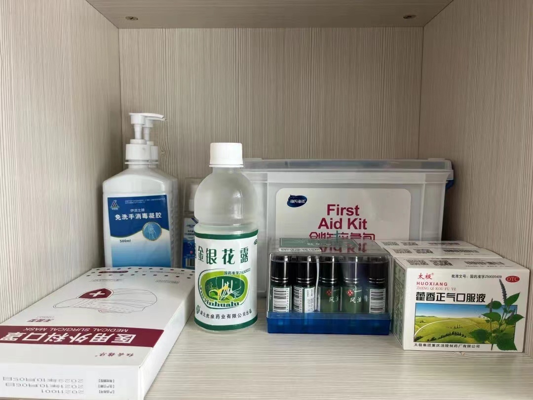 户外劳动者服务点里配备的防暑物资。(仁和区融媒体中心供图)