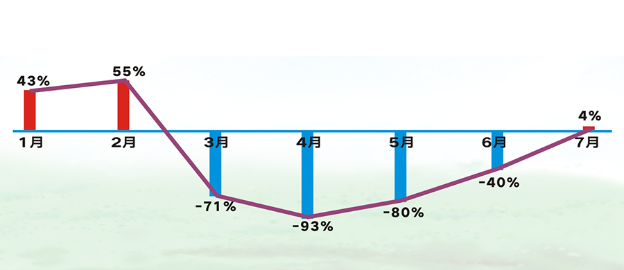今年上半年,受新冠疫情影响,峨眉山景区游客数量呈“过山车”走势。景区游客人数在一、二月份创下历史新高,同比增长分别增至43%和55%。三月份出现负增长,四月份跌到谷底,同比下降93%。五月份开始逐渐回升,并在7月上旬实现增长。