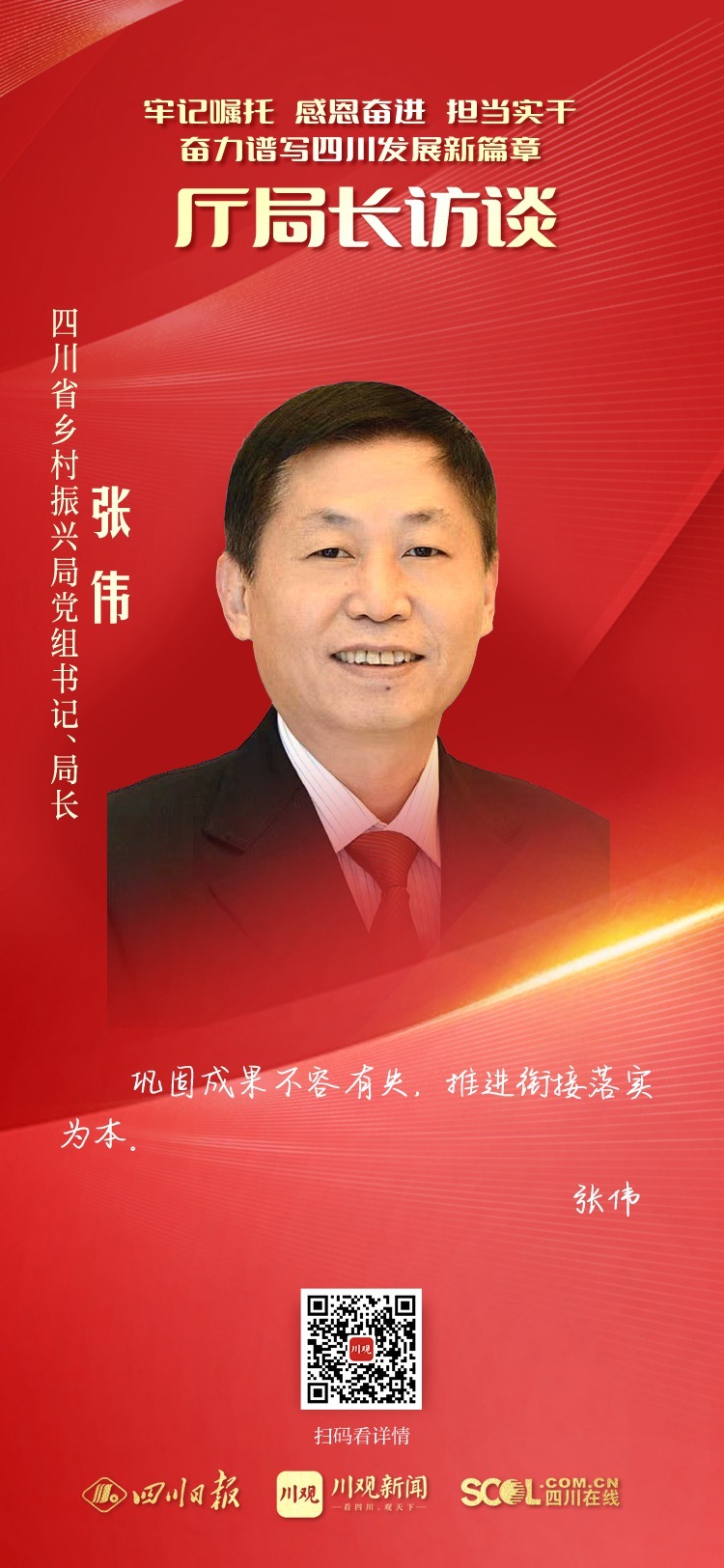 省第十二次党代会明确,推动巩固拓展脱贫攻坚成果同乡村振兴有效衔接,守住不发生规模性返贫底线。如何做好有效衔接,书写接续推进乡村振兴优异答卷?川观新闻记者近日专访了省乡村振兴局党组书记、局长张伟。