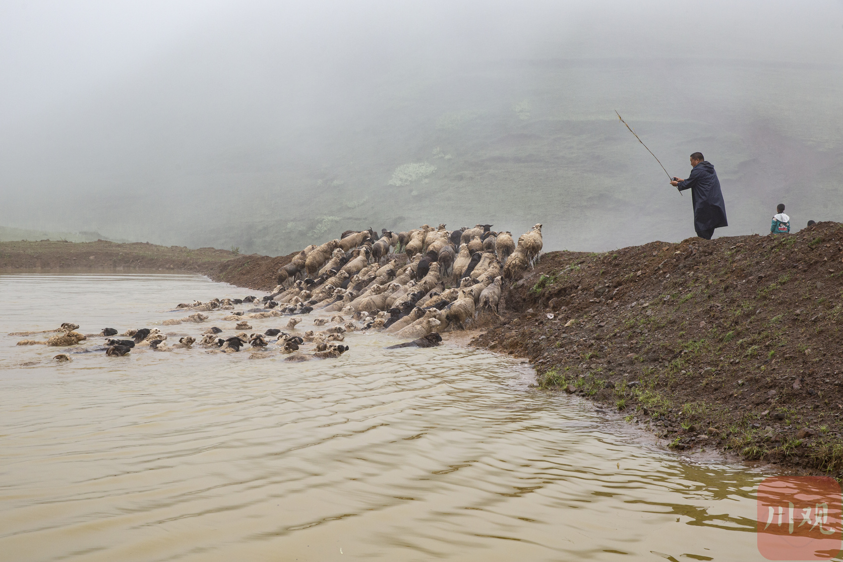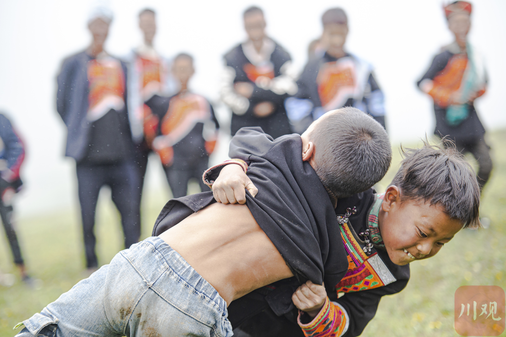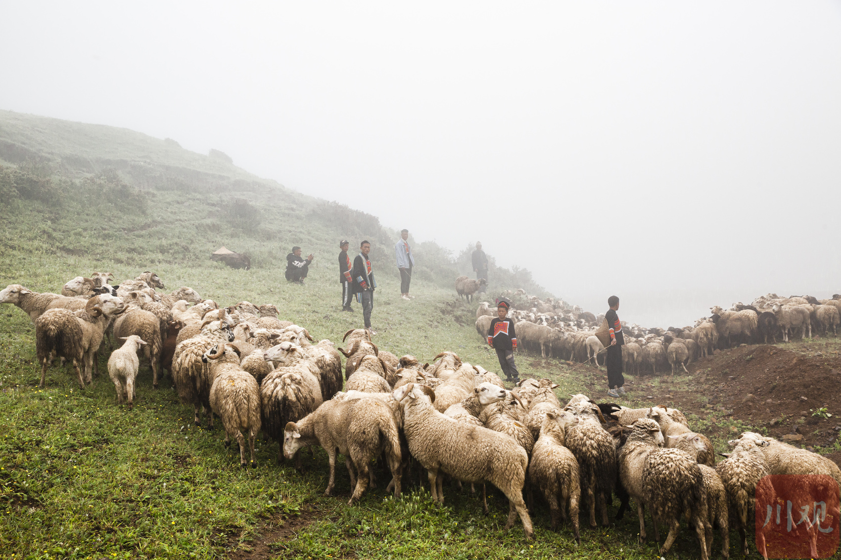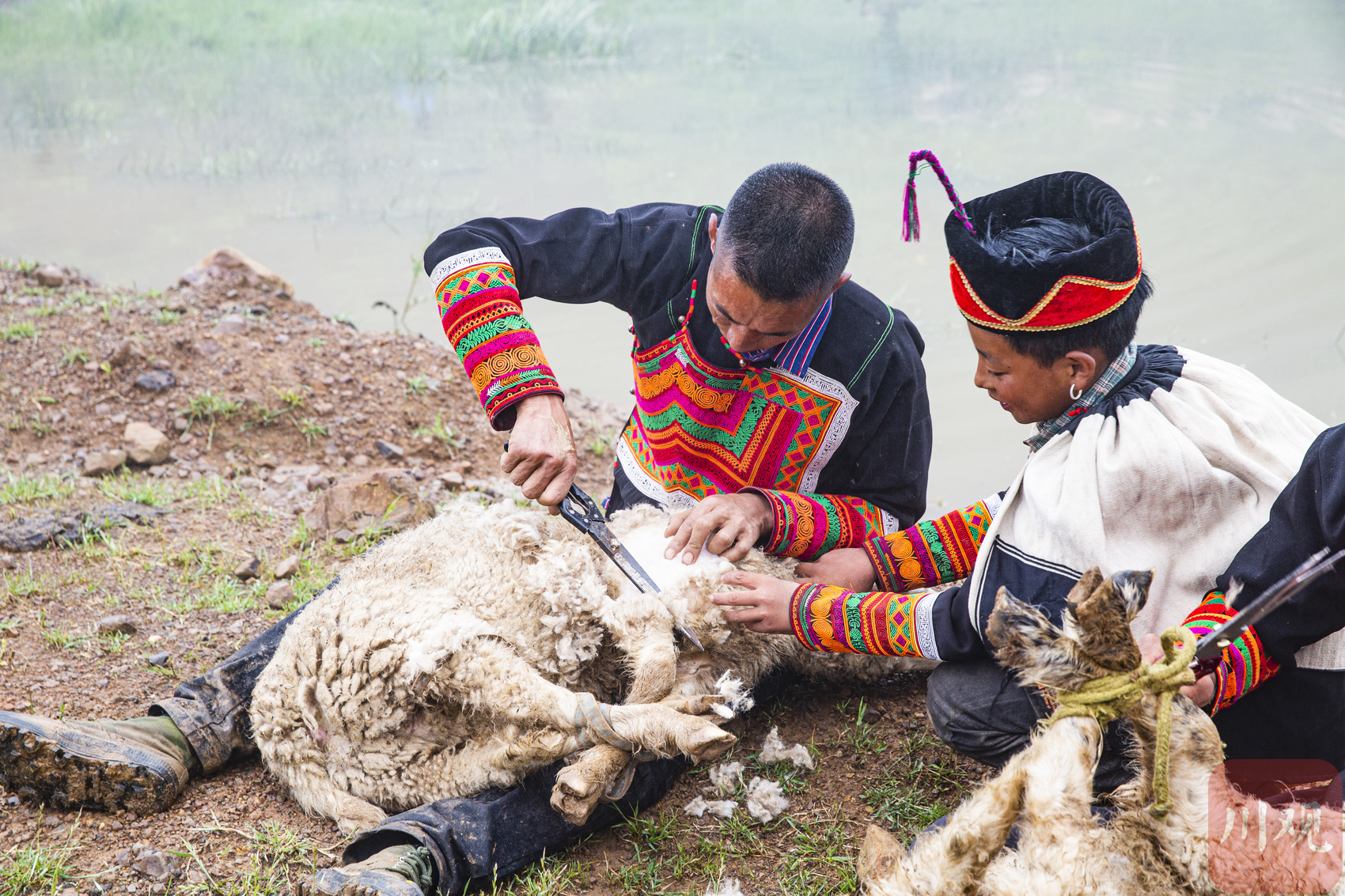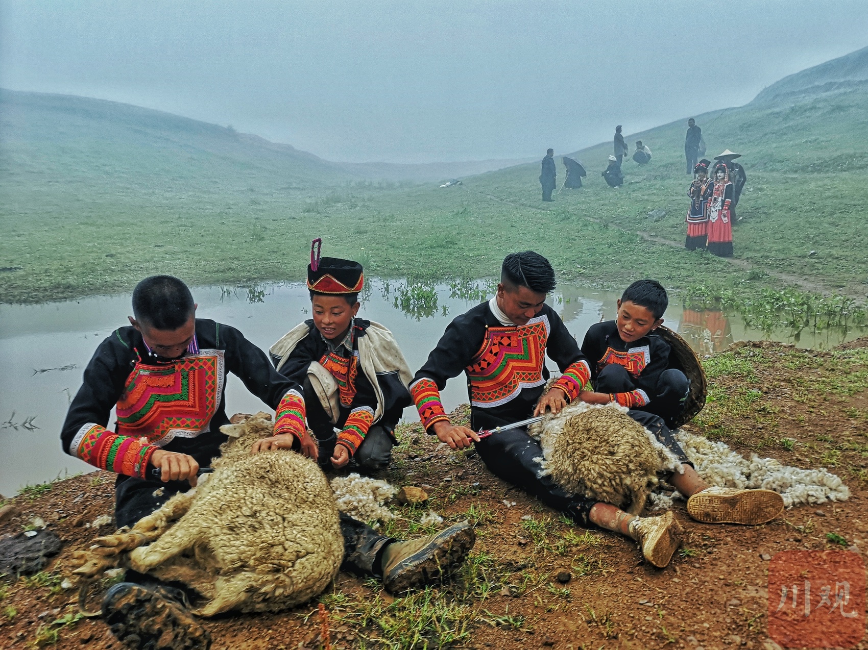 7月19日,凉山州美姑县巴普镇黄茅埂山间,农户们在风雨中举行“剪羊毛节”民俗活动。“剪羊毛节”彝语为尼姆·约纱茨,俗称“赶羊会”,是一场当地牧民庆祝养羊获得丰收,祈求来年羊群顺利成长的民俗盛会。据了解,当地彝族牧民还将举行斗羊、摔跤等民俗活动,祈福人畜安康、五谷丰登。
