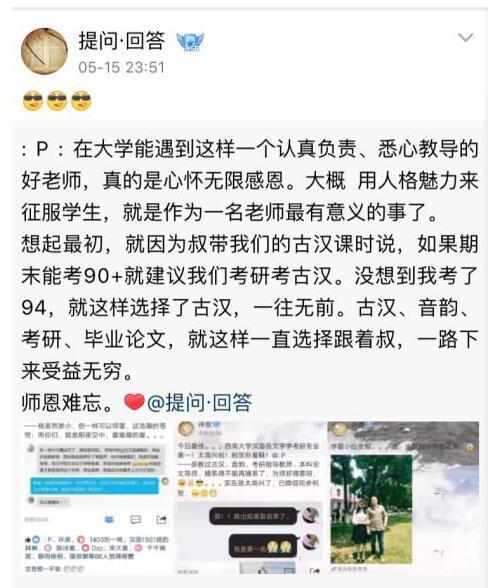 许叔对音韵学的热爱感染了许多学生走上研究语言的道路,他们也在许叔的影响下实现了梦想,考研成功。为上许叔的古汉课,不少学生甚至用柚子皮占座!