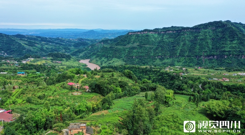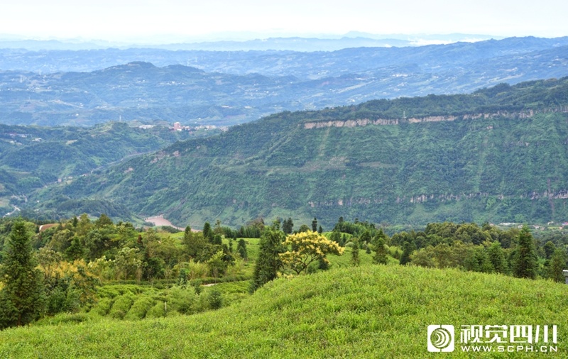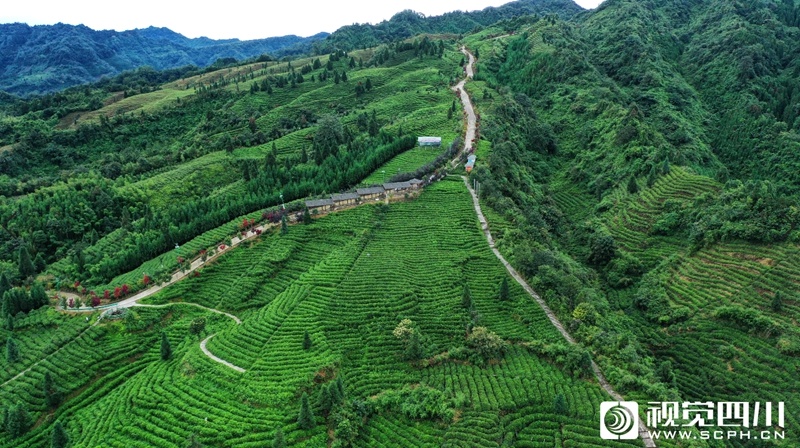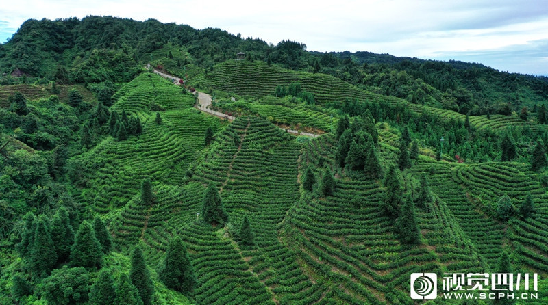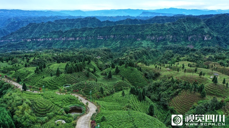 9月,宜宾市屏山县大乘镇双峰村,万亩茶园在大山上画出了一圈圈的圆形,成为美丽乡村的特殊符号。