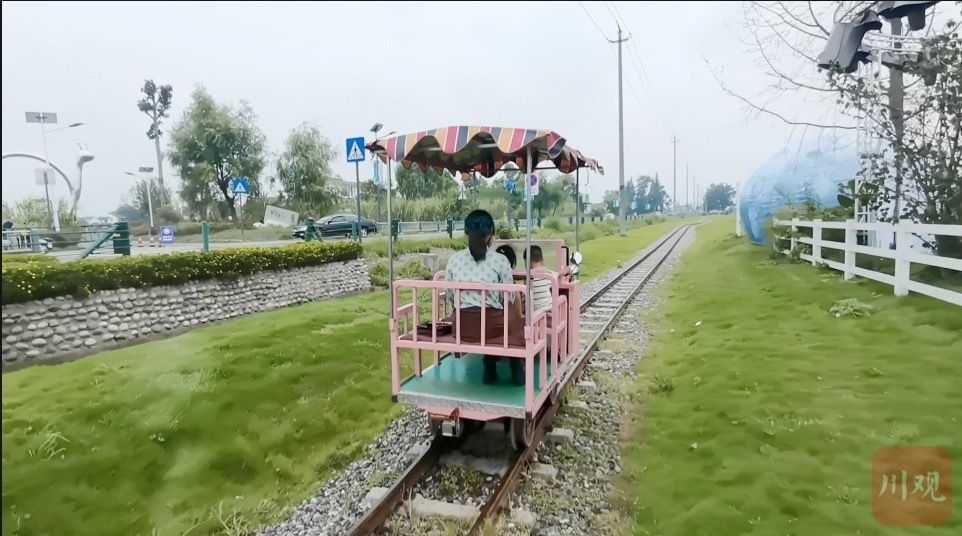 川观新闻记者注意到,靠近小火车出发点,有一个正在建设中的田园剧场。王纪说,该剧场由村集体经济组织和社会资本共同打造,即将对外呈现,未来游客可以在这里欣赏小型的剧场表演、看电影等,“我们要让五星村每年都有新变化,越来越好玩。”