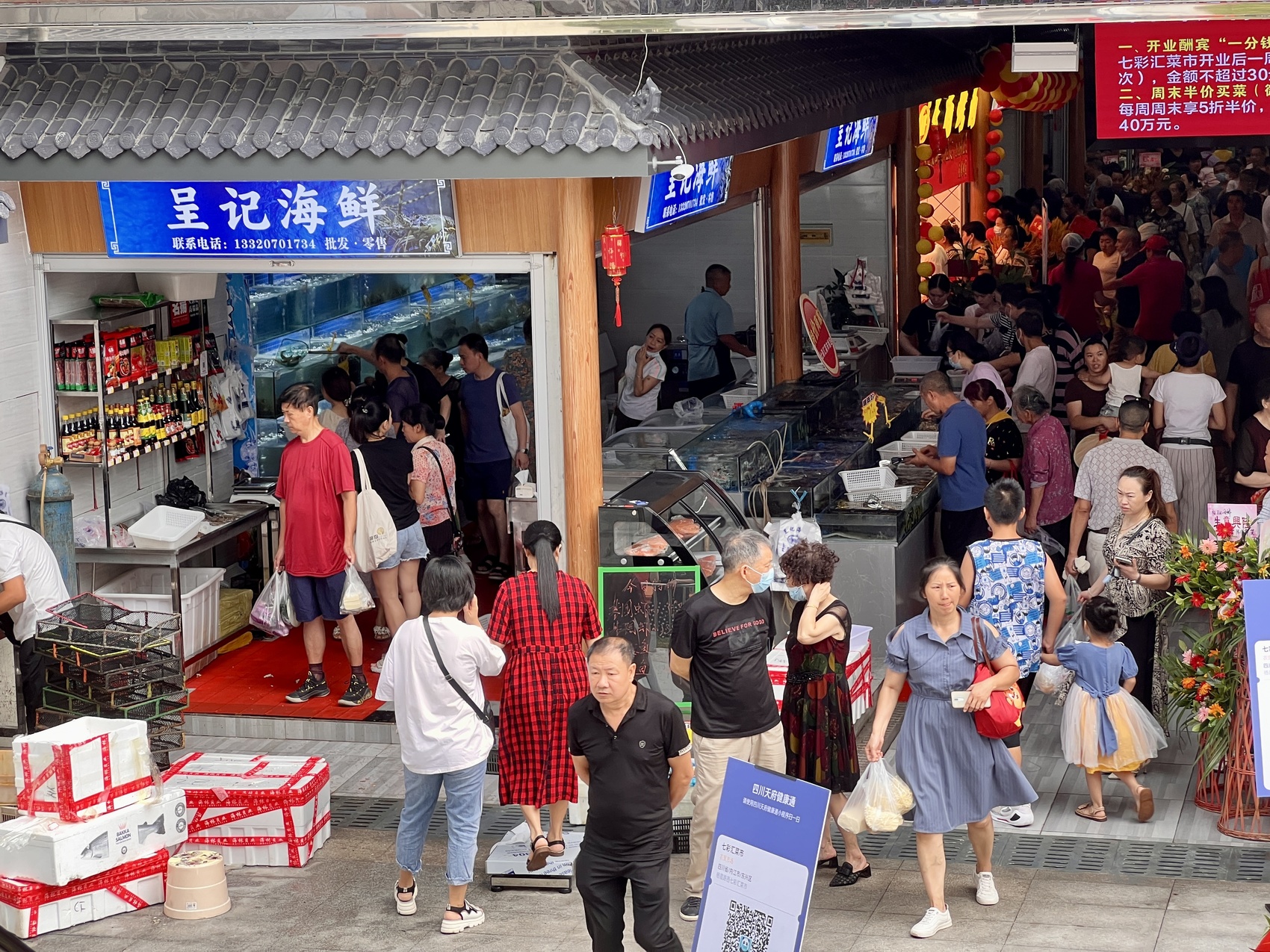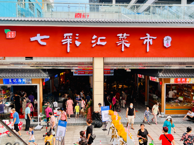 7月21日,内江市东兴区图书馆对面,位于北环路边的七彩汇商业中心内的七彩汇菜市开业。