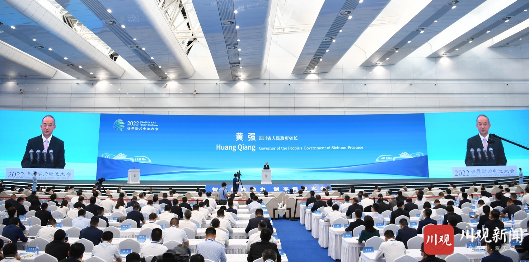 黄强在致辞中代表省委书记王晓晖和省委省政府,对各位嘉宾表示欢迎。他说,以动力电池等为代表的能源革命,奏响了新一轮科技革命和产业变革最强音。四川是全国最大的清洁能源基地,资源富集、市场巨大、创新活跃,正成为全球动力电池产业链最完整的地区之一。当前,成渝地区双城经济圈建设、国家综合立体交通“四极”之一、西部陆海新通道建设、实现碳达峰碳中和等重大战略前所未有开拓了四川未来发展空间。我们将全面贯彻落实习近平总书记来川视察重要指示精神,加快“制造强省”建设,奋力打造具有世界影响力的优质清洁能源基地和动力电池产业基地。我们将强化创新驱动,搭建“政产学研用”贯通的创新平台,加强关键核心技术攻关,创造更多原创性引领性科研成果。我们将强化产业带动,深入实施“电动四川”行动,引进培育头部企业、链主企业,打造更多拳头产品。我们将强化开放联动,营造市场化法治化国际化营商环境,深度参与国际产业合作,让更多“四川智造”走出国门、惠及世界。
