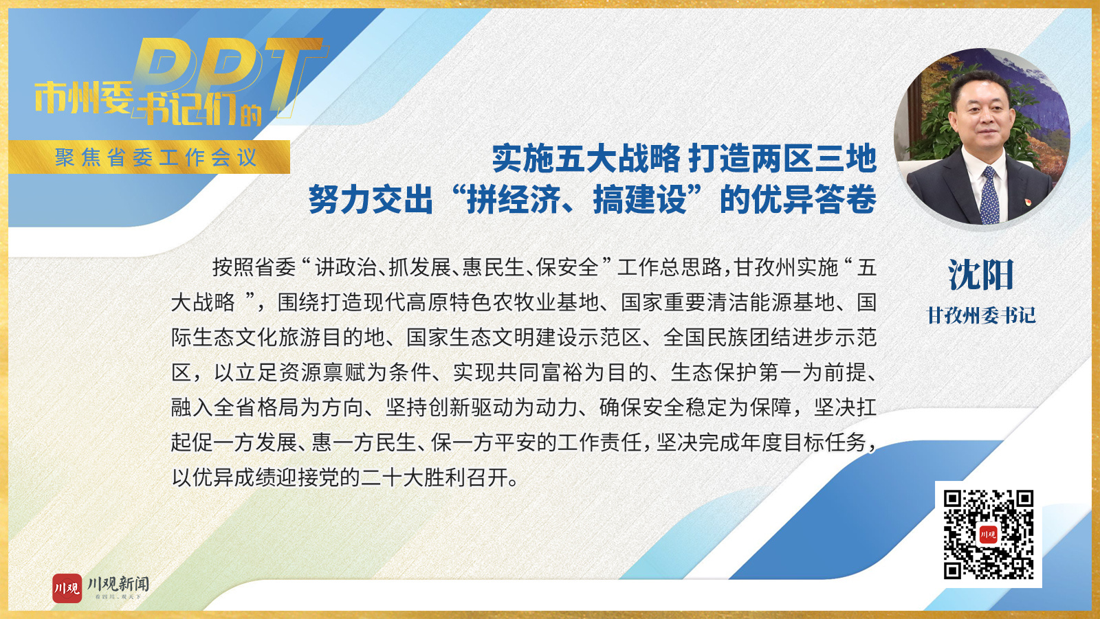 甘孜州委书记沈阳:实施五大战略 打造两区三地 努力交出“拼经济、搞建设”的优异答卷