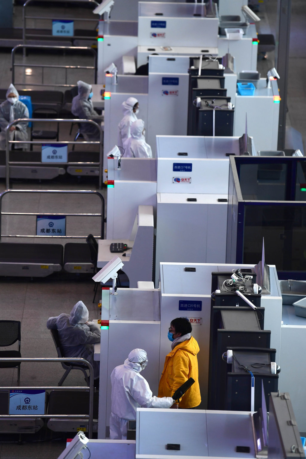 2月5日,成都东客站、双流机场等客流相对密集的交通运输部门,严格检测过往旅客体温,并对站内设施定期消毒。川报观察记者 何海洋 摄