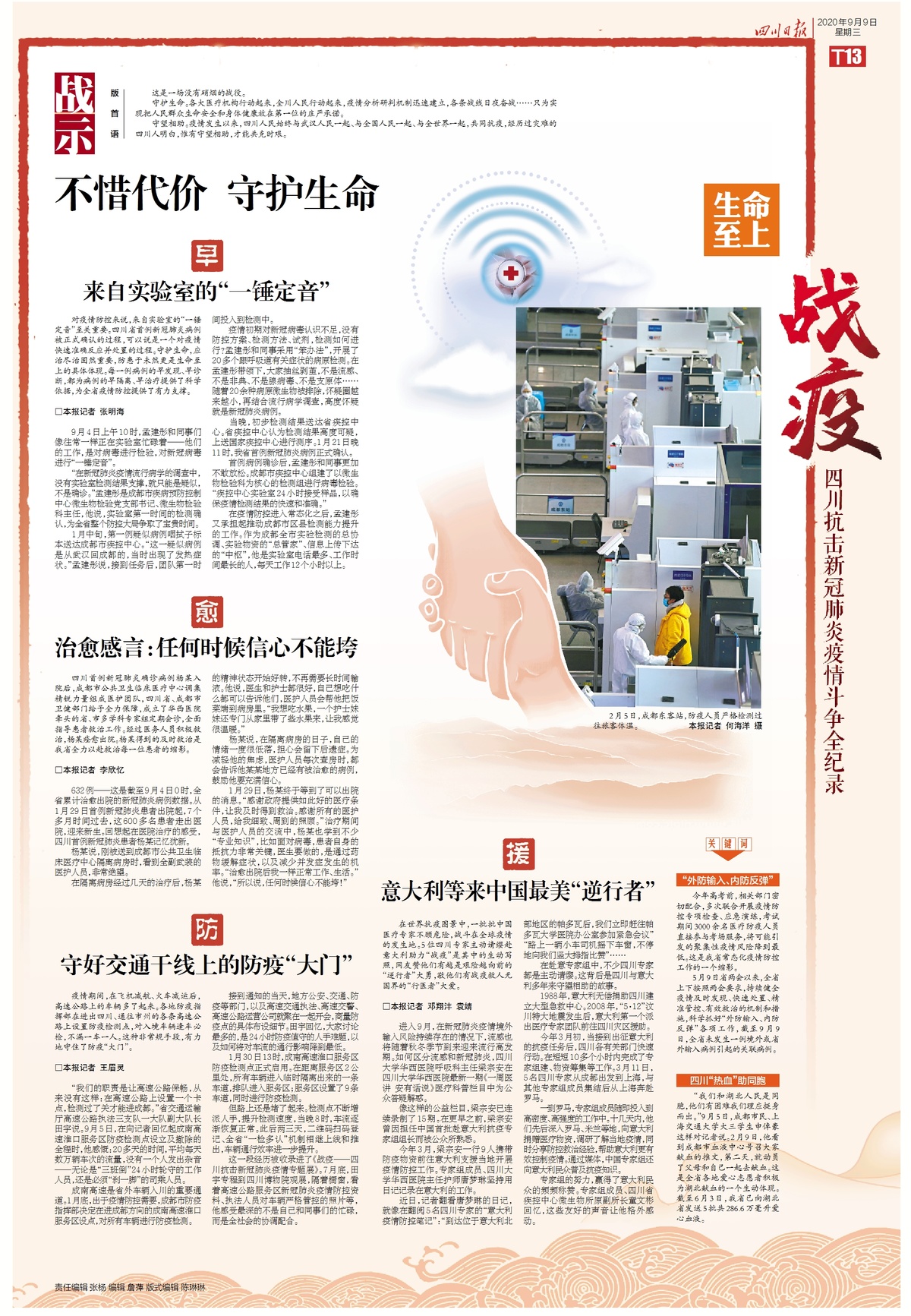 有多尊重生命就会挽救多少生命。四川首例新冠肺炎确诊病例杨某入院后,成都市公共卫生临床医疗中心调集精锐力量组成医护团队,四川省、成都市卫健部门给予全力保障,成立了华西医院牵头的省、市多学科专家组定期会诊,全面指导患者救治工作。经过医务人员积极救治,杨某痊愈出院。杨某得到的及时救治是我省全力以赴救治每一位患者的缩影。