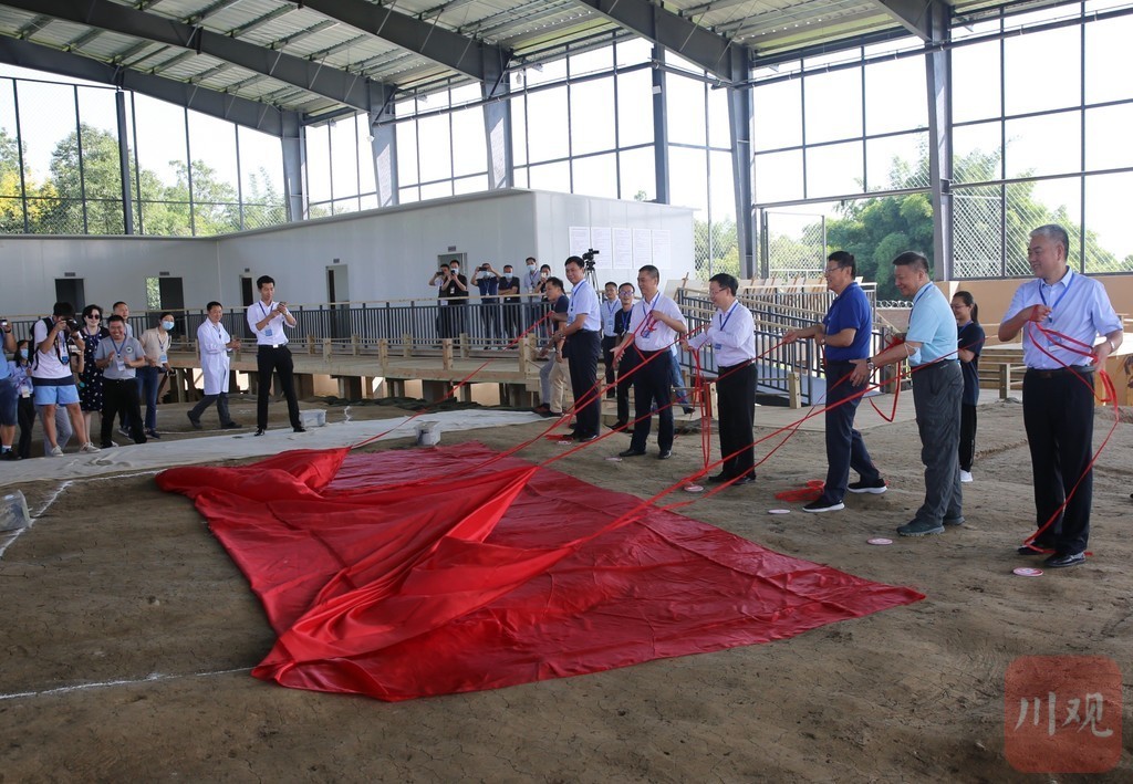 9月6日,三星堆遗址祭祀区,昔日开放式的遗址公园已经被一座精致的钢构大棚覆盖。34年前,这里发现的三星堆一二号祭祀坑,让古蜀文明一醒惊天下。34年之后,这片区域再度发现了6座祭祀坑,新一轮考古将重新在这片区域开启,正式的启动仪式在6日当天上午举行。