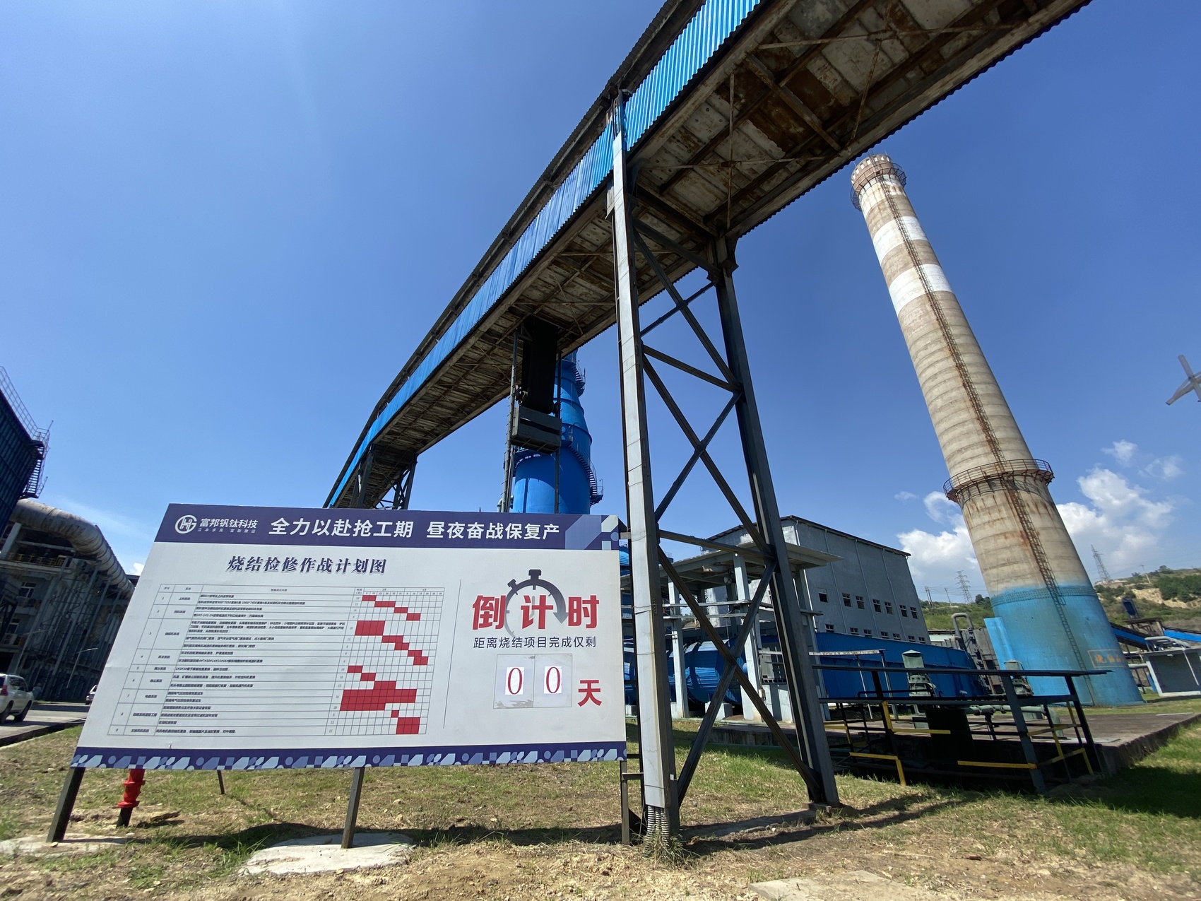“全力以赴抢工期 昼夜奋战保复产。”在攀枝花富邦钒钛科技有限公司,一块立在厂区里的牌子上,除了写着上面简短有力的标语,还画着检修作战计划图和项目倒计时。