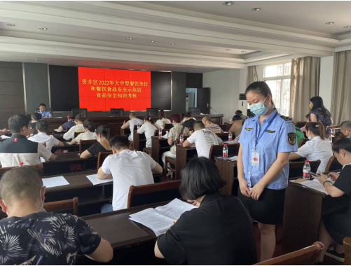 7月26日,自贡市市场监管局会同市商务局首次开展大中型餐饮服务单位和示范店责任人食品安全知识线下考核。全市490户大中型餐饮服务单位和餐饮服务示范店的负责人、食品安全管理员共487人参考。市食药安办副主任,市市场监管局党委委员、副局长郭新带队巡考;市纪委监委驻局纪检组参加巡考。