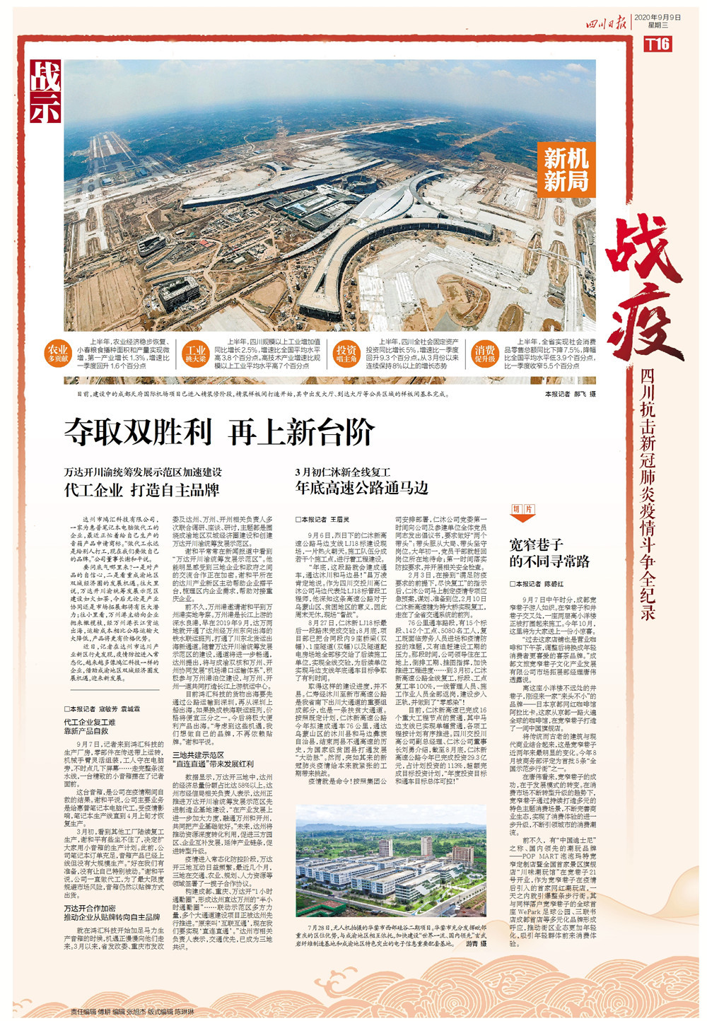 上半年,农业经济稳步恢复、小春粮食播种面积和产量实现微增,第一产业增长1.3%,增速比一季度回升1.6个百分点