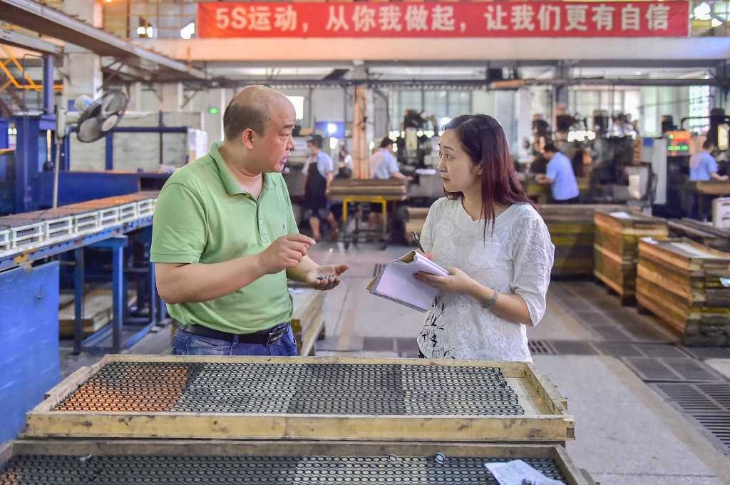 绵阳市游仙经济试验区服务专班走进车间。 王勇 摄(视觉四川)