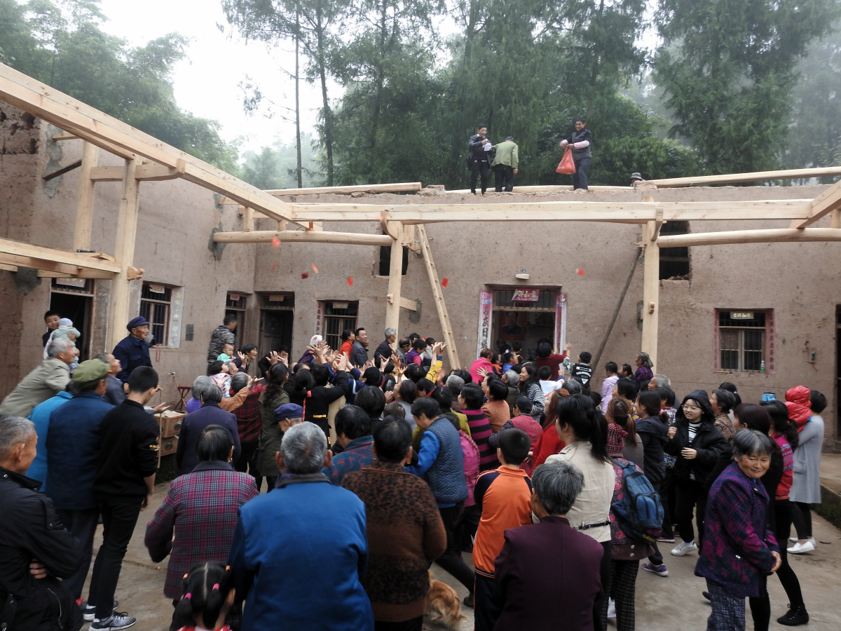 《川北旧事》摄制组拍摄建房抛梁。