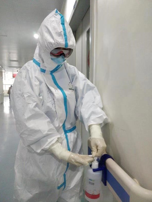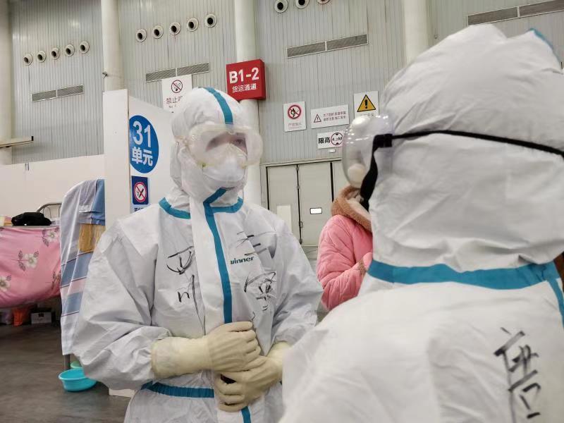 进入隔离区之前要全副武装,李寰进入武汉大学人民医院东院的重症病房尤为惊心动魄。“我的毛衣外面穿了一件手术服,这是为了尽量避免自己的衣服被污染,然后穿两层隔离服,最后再套上防护服。”李寰告诉记者,她穿的防护服比较大,戴了N95口罩和护目镜之后,面部还有一点缝隙,帮她穿防护服的护士,直接拿了一卷胶布把她的脸缠了一圈,她觉得到呼吸困难,而护士却很淡定地告诉她:“忍住。”