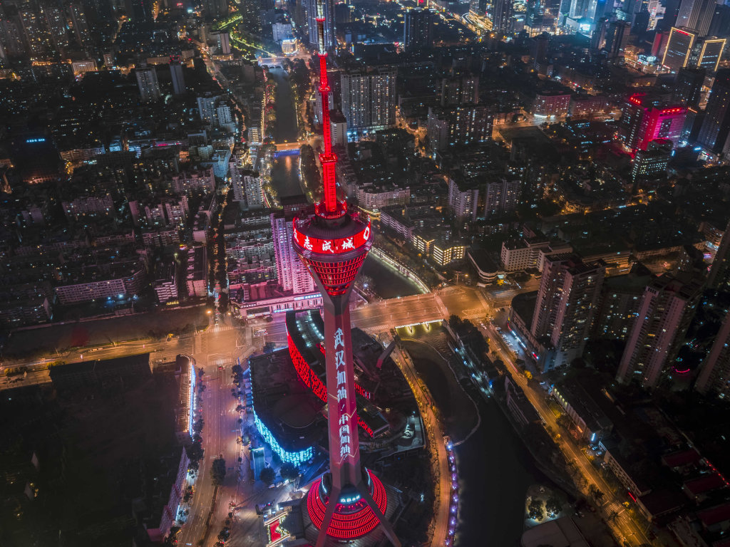 2月8日元宵夜。成都市天府熊猫塔点亮,“武汉加油!中国加油!” 何海洋 田为 摄