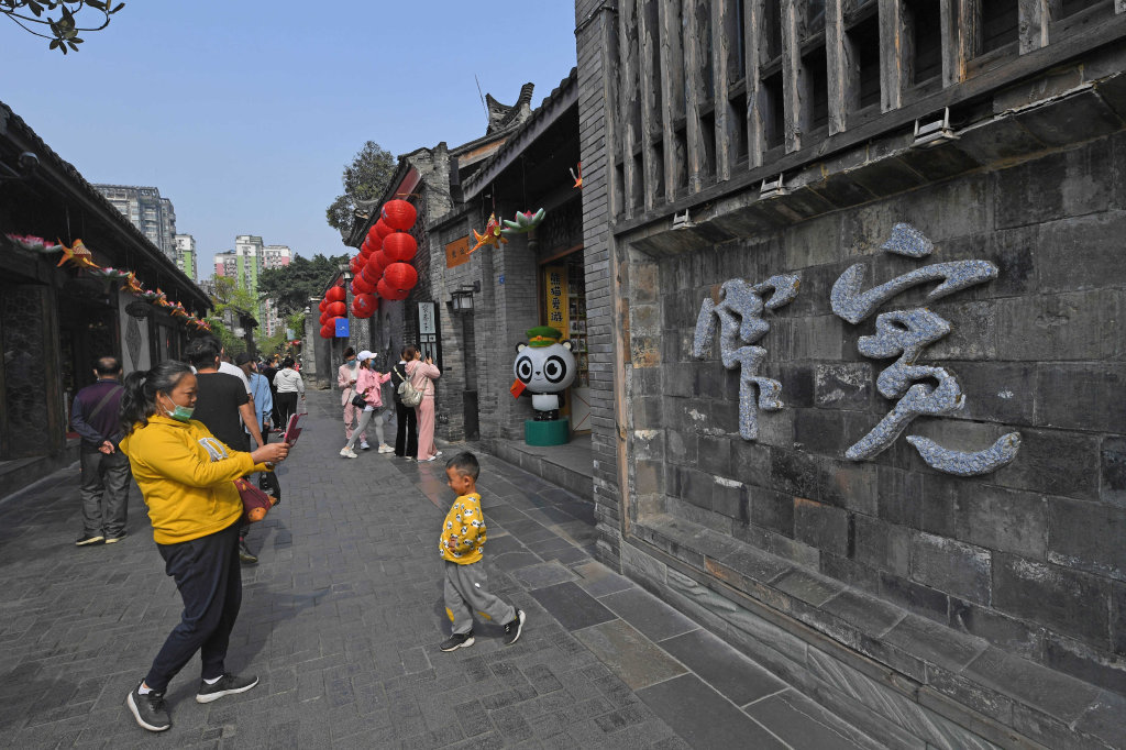 3月23日,成都宽窄巷子热闹起来。 肖雨杨 摄