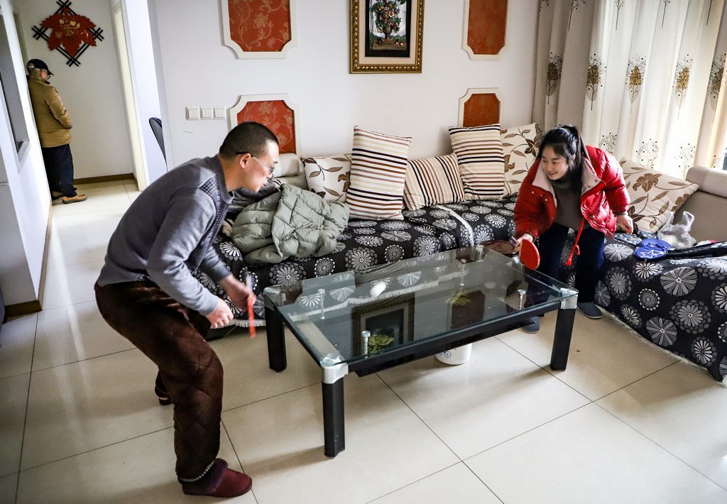 1月30日,南充市,宅家的父女在打兵乓球。何颖 摄