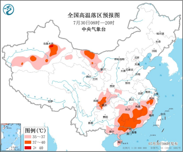 中央气象台7月30日06时继续发布高温黄色预警:预计7月30日白天,四川盆地中东部有35℃以上高温天气,其中,四川盆地东部部分地区最高气温37~39℃。