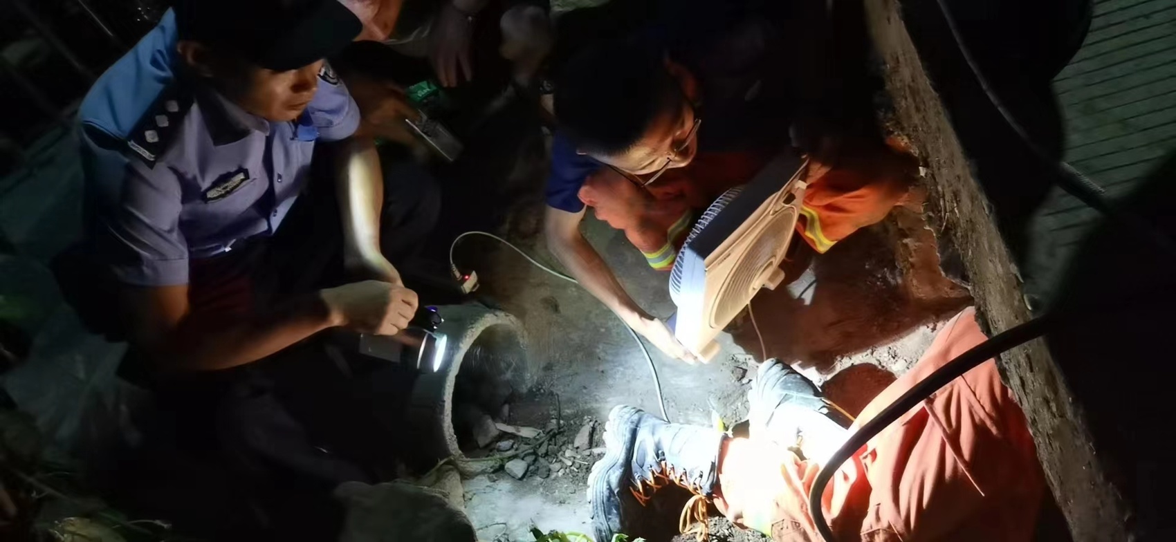 8月1日晚11时许,彭山一老人被困圆管涵洞6小时后成功获救,身体无大碍。围观群众对民警、消防队员连续数小时的紧急救援纷纷点赞。