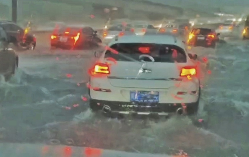 8月4日一早,成都市区普降大雨,市民宋女士乘车经过三环路与日月大道交会的高架路段时,拍摄到了这段路面积水的画面,车行此处如同“行船”。川观新闻提醒:驾车路经此段的市民朋友小心驾驶。