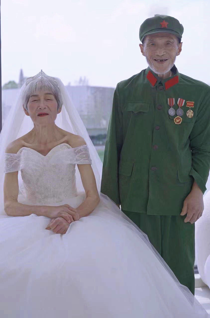 “七夕节”前夕,青神县民政局和志愿者协会、社工站联合,开展了“圆抗美援朝老兵婚纱梦”活动,专门为雷明洪这样的老兵补拍婚纱照,送上祝福。