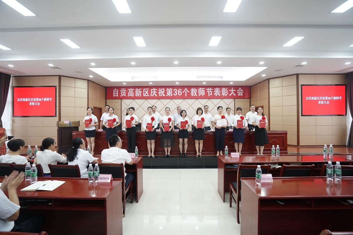 9月9日,自贡高新区召开庆祝第36个教师节表彰大会,隆重表彰一年来全区教育战线涌现出的100名先进模范 ,激励广大教师和教育工作者献身教育事业,促进教育事业科学发展。市委常委、高新区党工委书记张邦举,全体在家委领导出席会议。