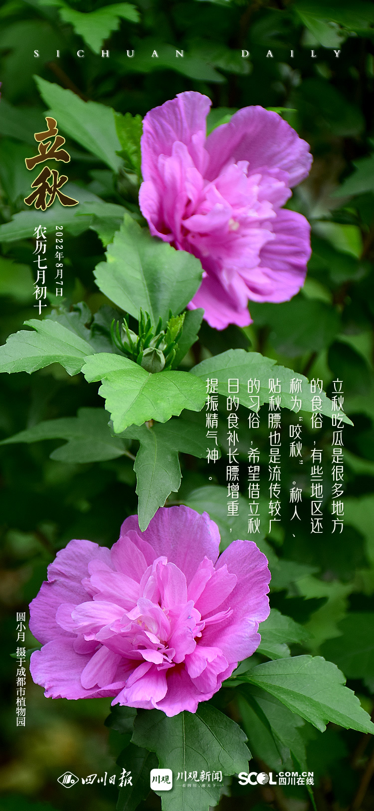 立秋是秋季的第一个节气,交节日期在公历8月7—9日之间。《月令七十二候集解》载:“立秋,七月节……秋,揫(jiū)也,物于此而揫敛也。”揫敛意为聚集、收敛。