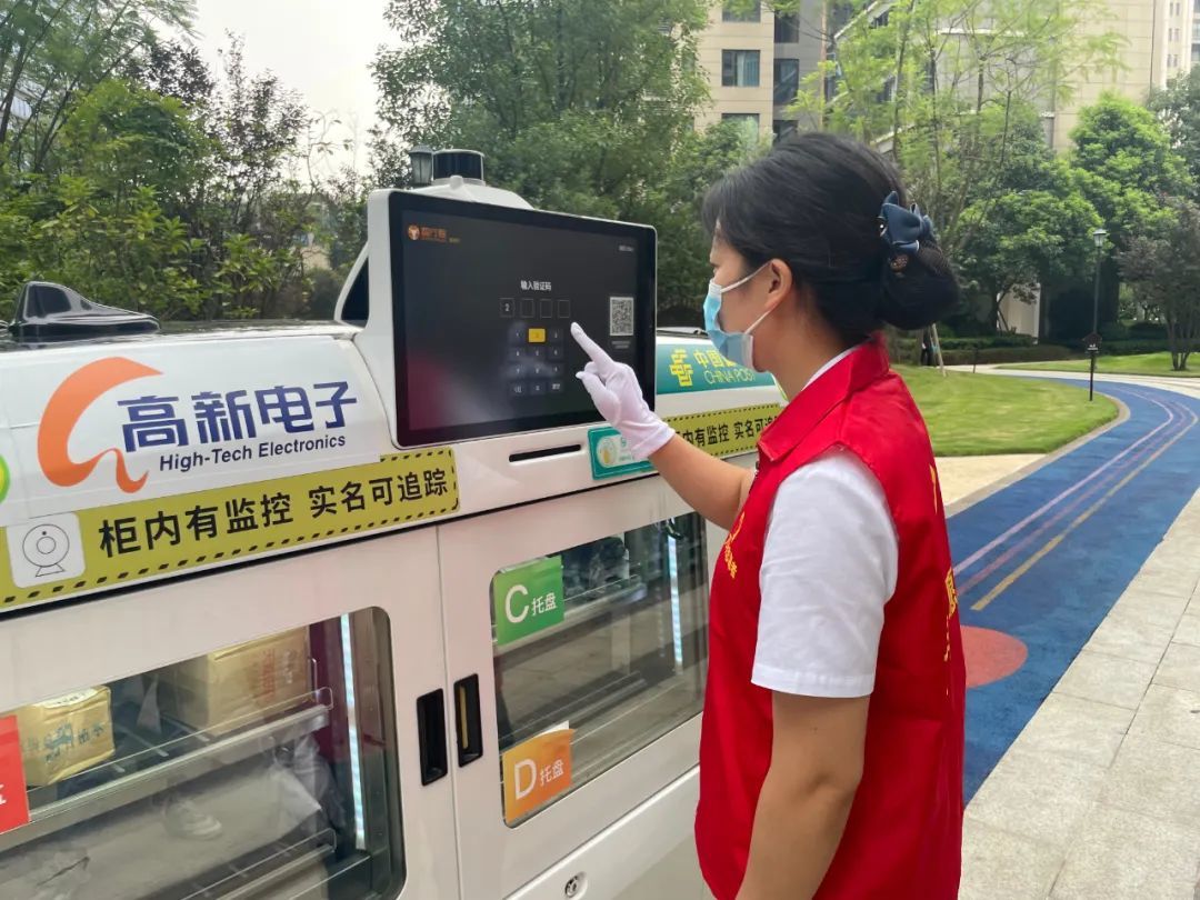 小区志愿者陈梦在屏幕上输入取件码后,车门自动打开。成都邮政分公司供图