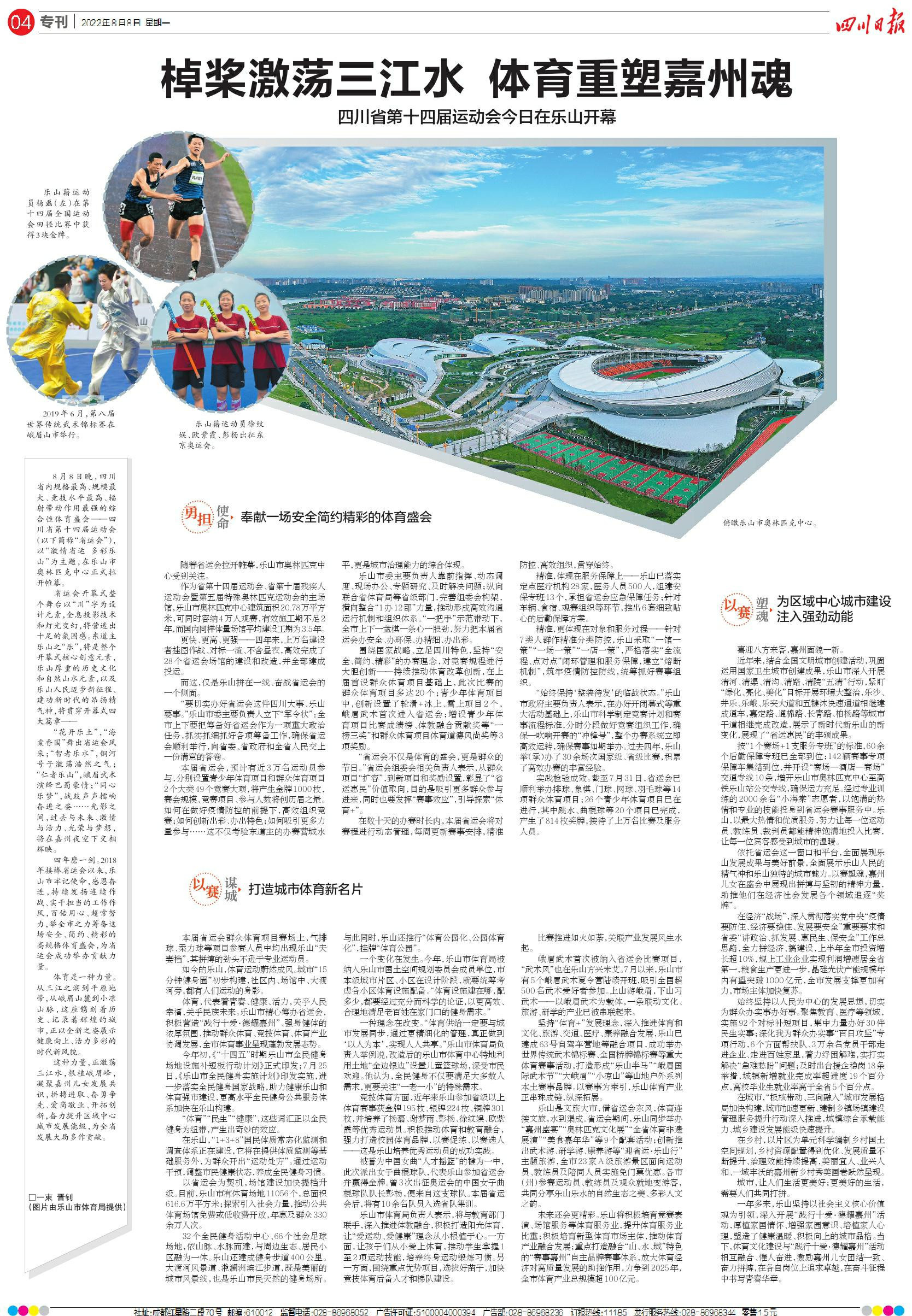 体育是一种力量。从三江之滨到平原地带,从峨眉山麓到小凉山脉,这座镌刻着历史、记录着辉煌的城市,正以全新之姿展示健康向上、活力多彩的时代新风貌。