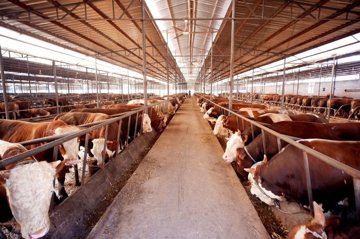 清山汉子家庭农场联合体养牛基地千头肉牛相互比肥。罗敏/摄