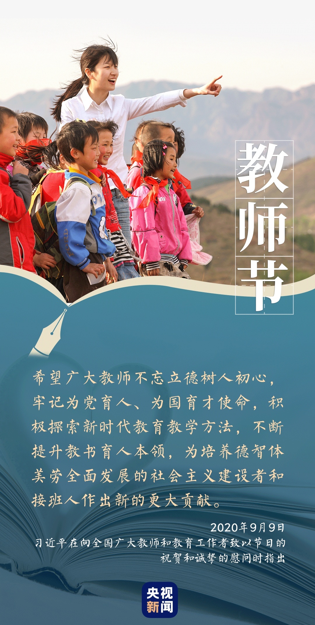 党和国家事业发展需要一支师德高尚、业务精湛、结构合理、充满活力的高素质专业化教师队伍,需要一大批好老师。第三十六个教师节,让我们跟总书记一起,向好老师致敬。