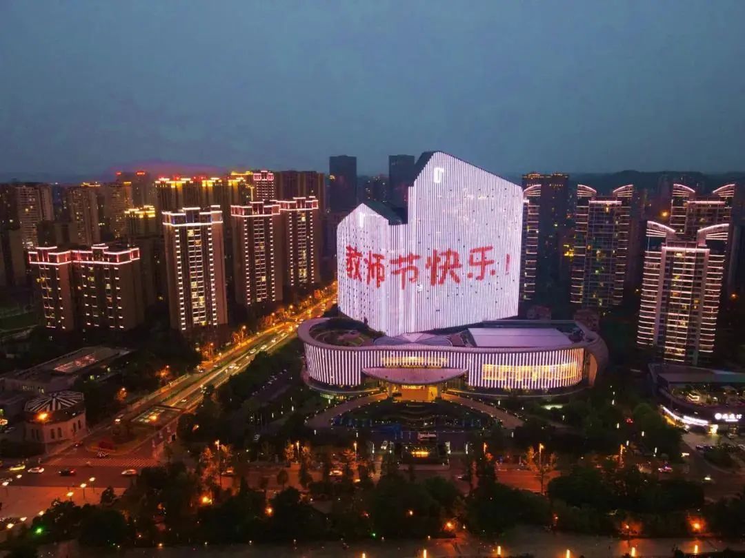 在南充、遂宁、绵阳等地城市的地标建筑,都循环播放着对教师的祝福。