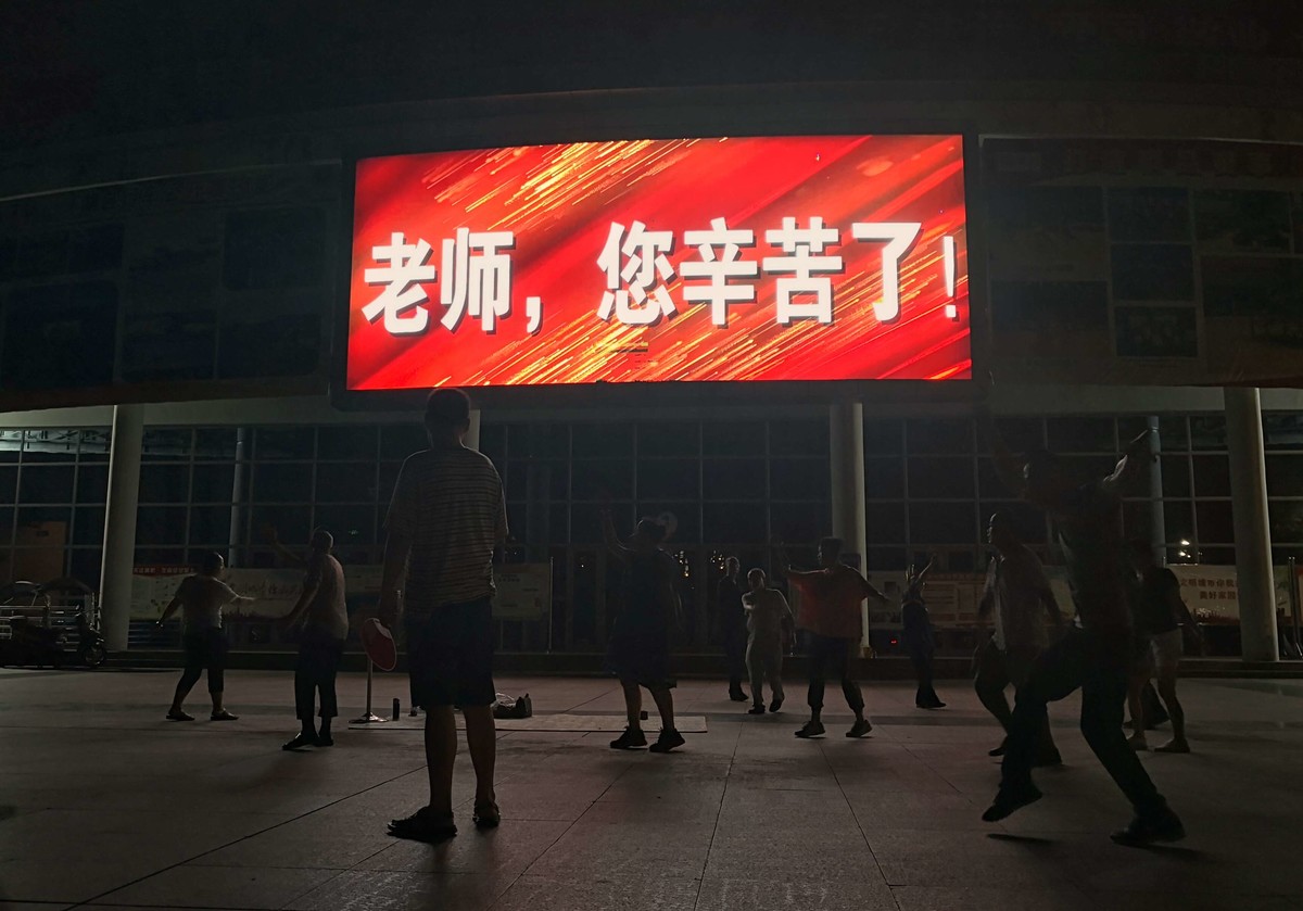 “老师,您好!”“老师,您辛苦了!”“教师节快乐!”“老师,谢谢您!”等标语在遂宁市各个单位和企业的电子屏上滚动播放,营造出了浓浓的节日气氛。向晟 摄