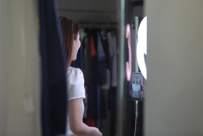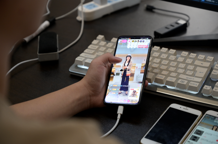 就在尹宝荣在自己的快递车边“守株待兔”时,22岁的江西女孩晓丹便利店匆匆吃完晚餐后,便一头扎进了旁边一幢大楼的一个直播间,等她赶到时间,直播间的灯光、商品、电脑等一切都已准备就绪,迅速换上第一套服装,直播开始了。