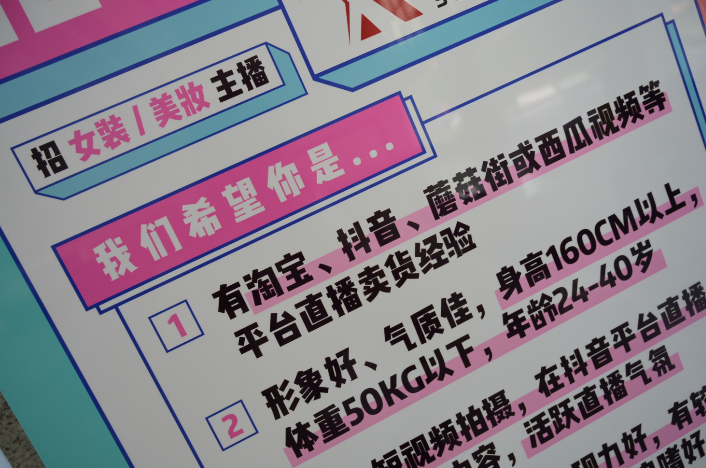 2020年8月9日,杭州九堡新禾联创工业园区内的主播招聘广告